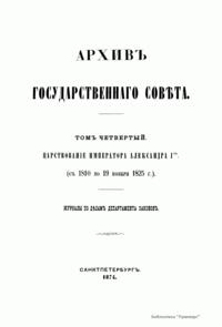 Архив Государственного совета. Том четвертый. Совет в царствование императора Александра I. С 1810 по 19 ноября 1825 г. Журналы по делам департамента законов. Часть первая
