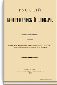 Русский биографический словарь (25 томов), в состав которого вошли имена и биографии виднейших деятелей государства, науки, просвещения и церковных деятелей, издавался Русским историческим обществом с 1896 по 1918 год. Русское историческое общество было основано в Санкт-Петербурге в 1866 году по инициативе известных отечественных историков, военных и государственных деятелей и ставило своей целью всесторонне содействовать развитию русского национального исторического просвещения. Общество пользовалось покровительством и финансовой поддержкой императорской семьи. Его деятельность носила археографический характер. Члены общества собирали исторические документы, которые публиковались в «Сборниках русского исторического общества». Всего до 1920 года (в этом году общество было закрыто) вышло 148 томов. Таким образом в научный оборот было введено большое количество документов XVIII – начала XIX века, ранее недоступных для исследователей, так как документальные материалы архивов царской России были для историков закрыты. К изданию русского биографического словаря, материалы которого до сих пор являются интереснейшим источником для исследователей, Общество приступило по инициативе императора Александра III. Тома биографического словаря выходили не в алфавитном порядке. С 1896 по 1909 год редактором словаря был руководитель Русского исторического общества, промышленник, член Сената Александр Александрович Половцев. Он выпустил 1, 2, 3, 6, 8, 12, 13, 14, 15, 18, 19, 21 и 22-й тома, поэтому этот словарь известен еще как «словарь Половцева».
