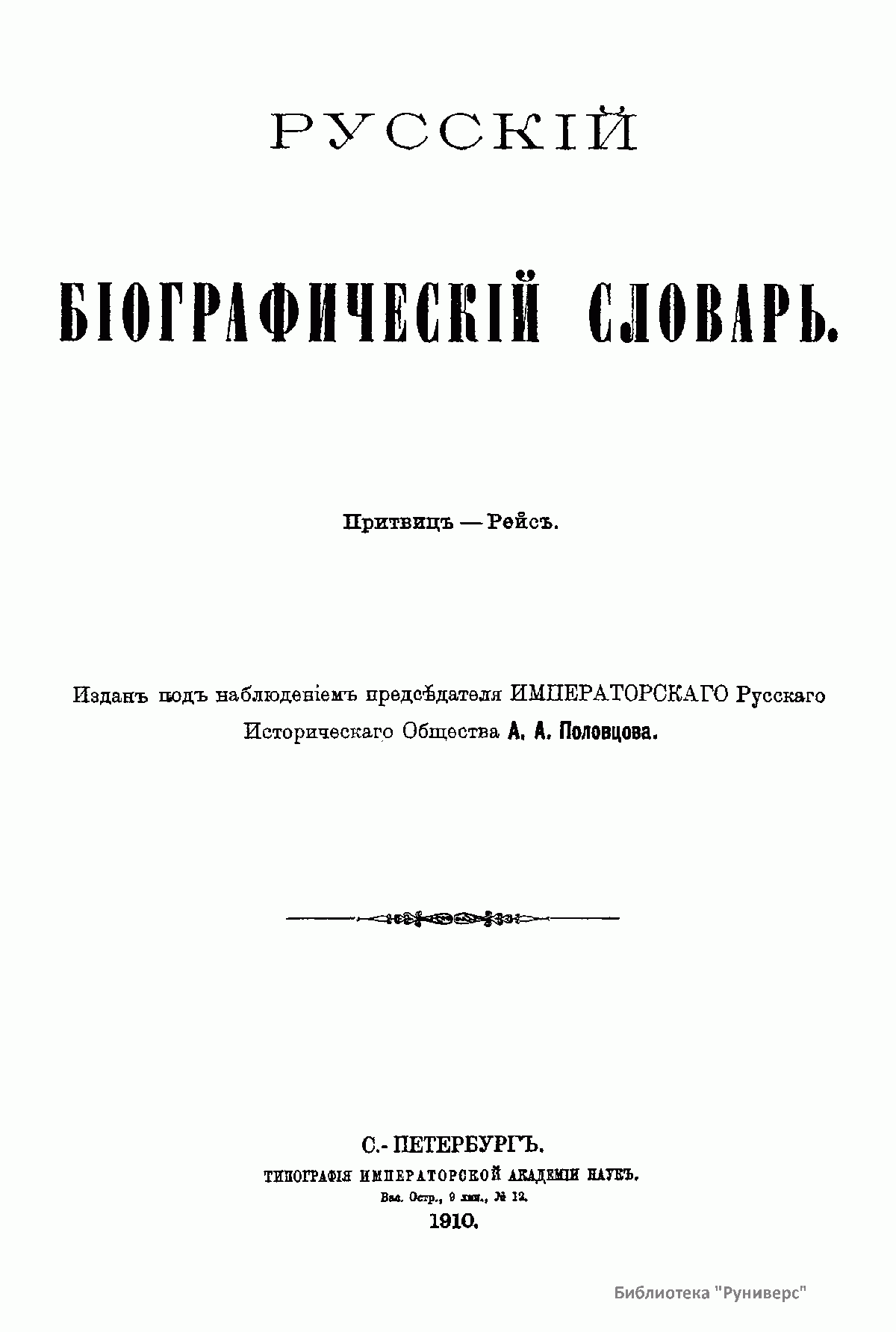 Русскiй бiографическiй словарь. Томъ XV. Притвицъ - Рейсъ