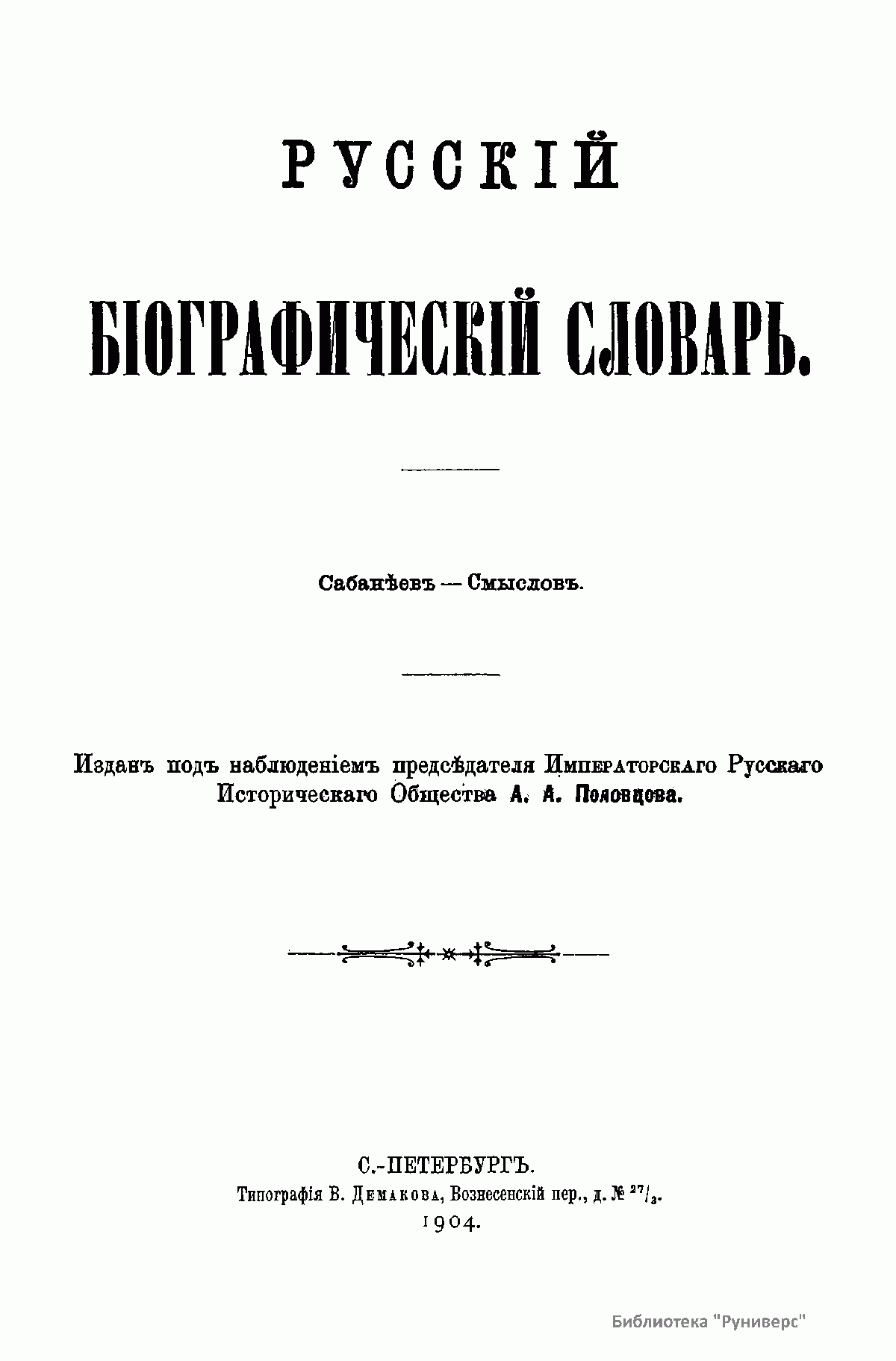 Русскiй бiографическiй словарь. Томъ XVIII. Сабанѣев - Смысловъ
