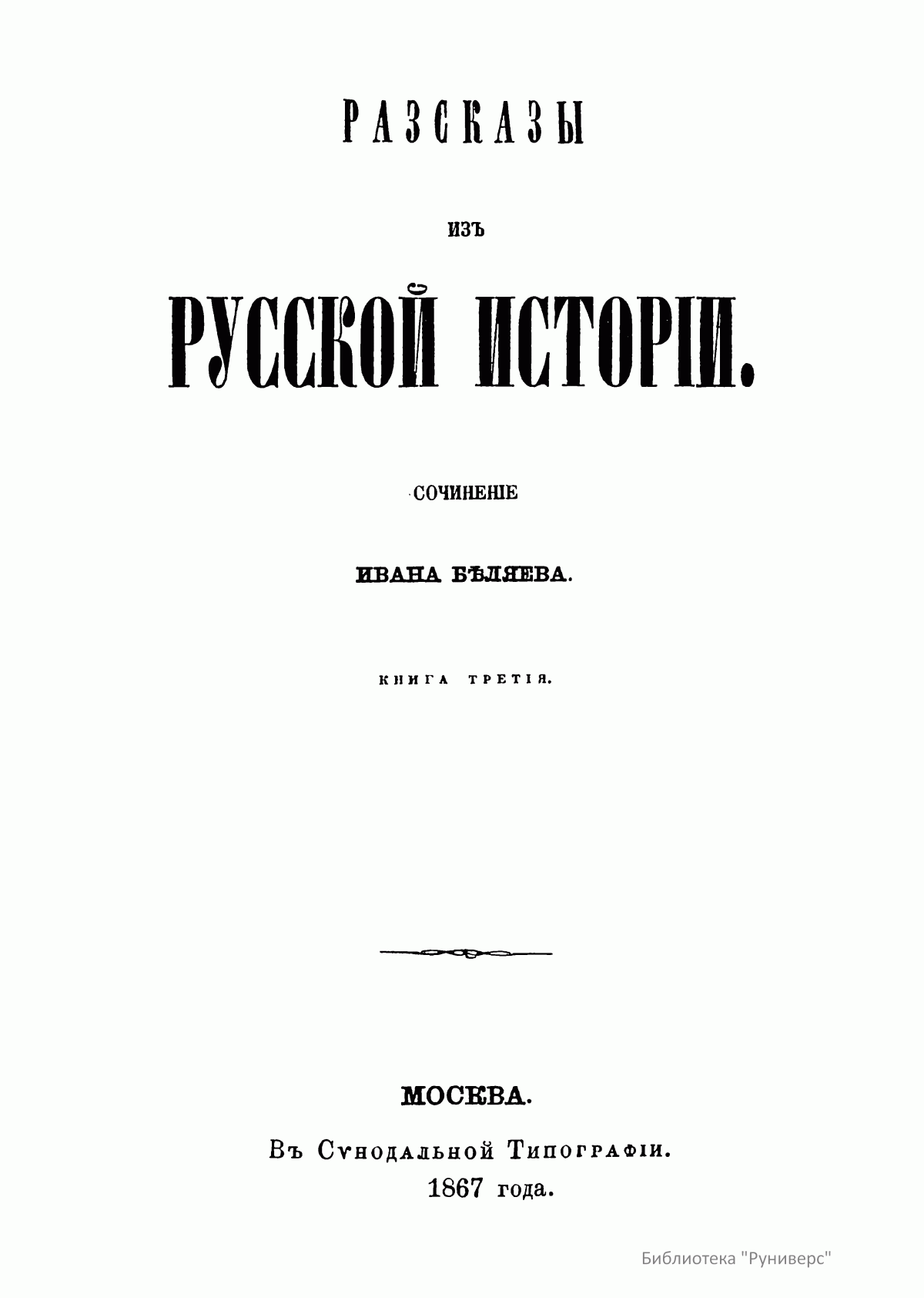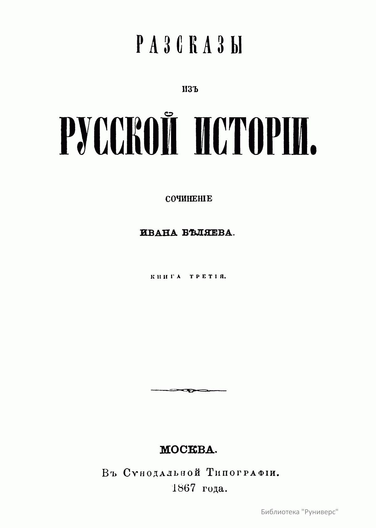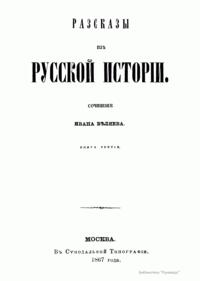 Иван Дмитриевич Беляев был славянофилом, сторонником общинного быта славян и признавал, что поземельная община возникла в далеком прошлом. В незаконченных «Рассказах из русской истории» (опубликовано только неполных 4 тома) Беляев дал опыт изложения русской истории согласно славянофильской теории. Первый том содержит одиннадцать рассказов: Русская земля; Первые князья из племени варягов-руси; Русская земля при первых варяжских князьях; Владимир и Ярослав; Русская земля при Владимире и Ярославле; Сыновья Ярослава; Русская земля при Ярославичах; Внуки и правнуки Ярослава; Русская земля при внуках и правнуках Ярослава; Суздальщина; Русская земля во время Суздальщины. Второй том посвящен Великому Новгороду и содержит одиннадцать рассказов: Новгородские владения; Новгородское общество; Новгородская церковь; Новгородское правительство; Новгород от прибытия Рюрика до кончины Юрия Владимировича Долгорукова, князя Суздальского; Борьба Новгорода с детьми Юрия Суздальского – с князьями Андреем Боголюбским и братом его Всеволодом; Борьба Новгорода с князем Ярославом Всеволодовичем; Новгород в первые 60 лет владычества татар над Россией; Борьба Новгорода с Тверскими и Московскими князьями; Борьба новгородцев за владения, и постепенное разложение новгородского общества; Падение Великого Новгорода. Третий том посвящен Пскову и псковской земле. В нем десять рассказов: Страна; Люди в псковской земле; Церковь в Пскове; Власти; Псков – пригород Новгорода Великого; Псков приобретает значительную самостоятельность, хотя и продолжает быть новгородским пригородом; Псков – младший брат Новгорода; Псков под опекою Москвы; Постоянное стеснение самостоятельности Пскова и его падение; Промышленность в Новгороде и Пскове. Четвертый том посвящен истории Полоцка, или Северо-Западной Руси, от древнейших времен до Люблинской унии. Автор успел издать только первую часть, где говорится о строе жизни Полоцка и Великого княжества литовского. Здесь четыре рассказа: Страна; Люди; Церковь; Власть.