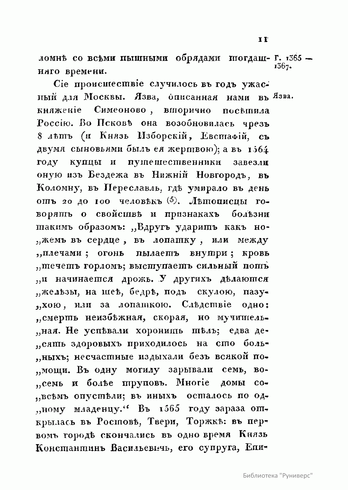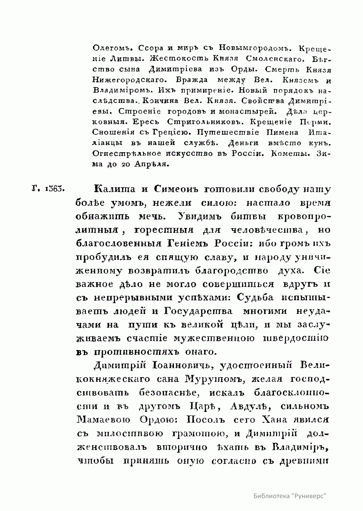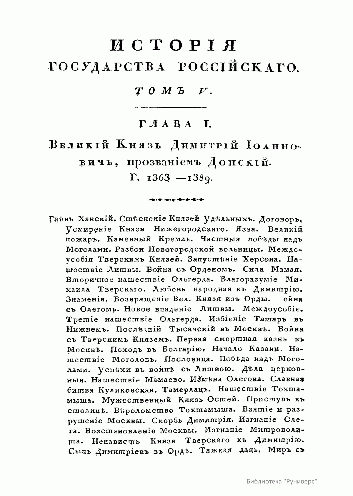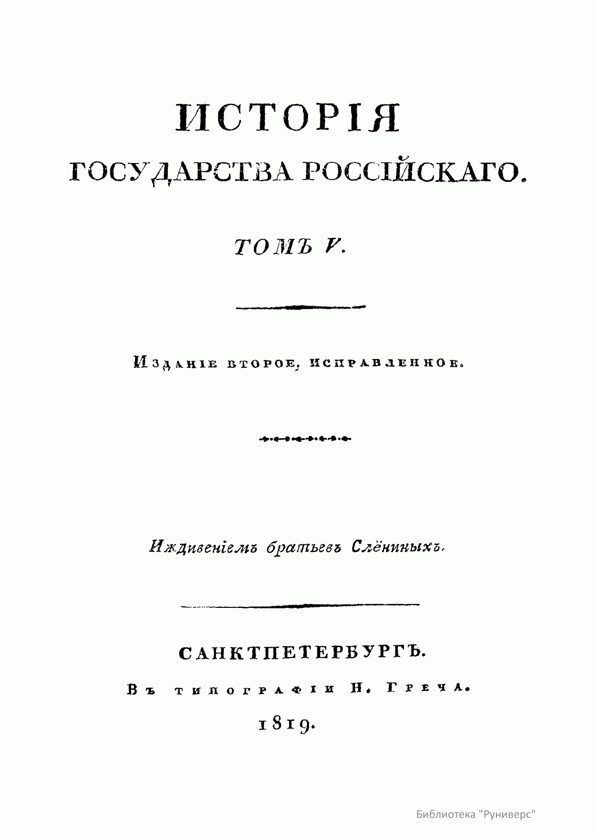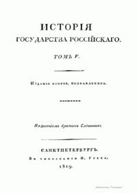 В 1816 году он выпустил первые восемь томов «Истории государства Российского», трёхтысячный тираж которых разошелся в течение месяца. В последующие годы вышли еще три тома «Истории», появился ряд переводов её на главнейшие европейские языки. Тенденциозно-монархическое освещение русского исторического процесса сблизило Карамзина с двором и царем, поселившим его подле себя в Царском Селе. Незаконченный XII том был издан уже после его смерти.