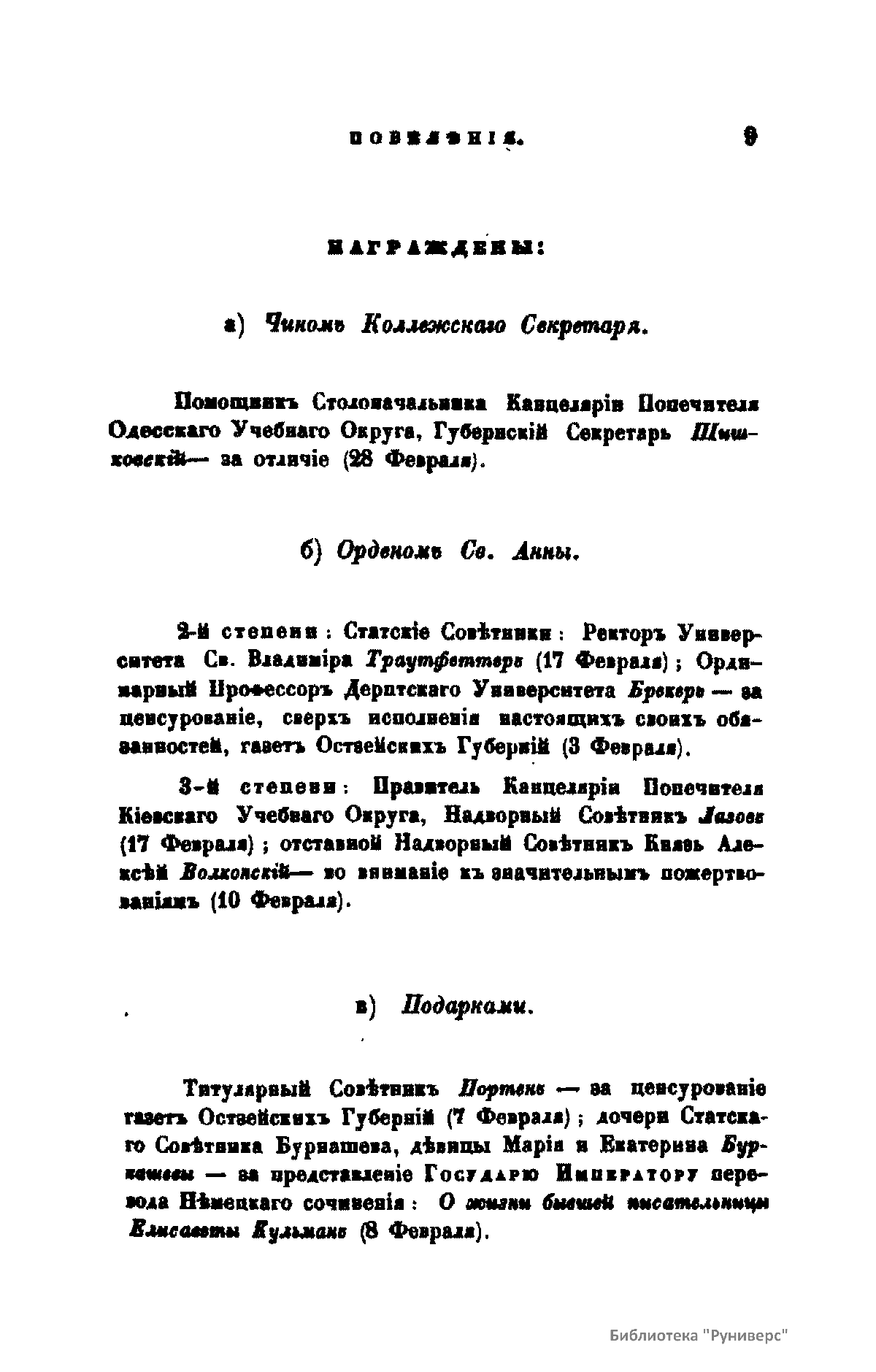 1. «Записки Департамента народного просвещения». Вышло в свет три книги этого издания – в 1825, 1827 и 1829-м годах.