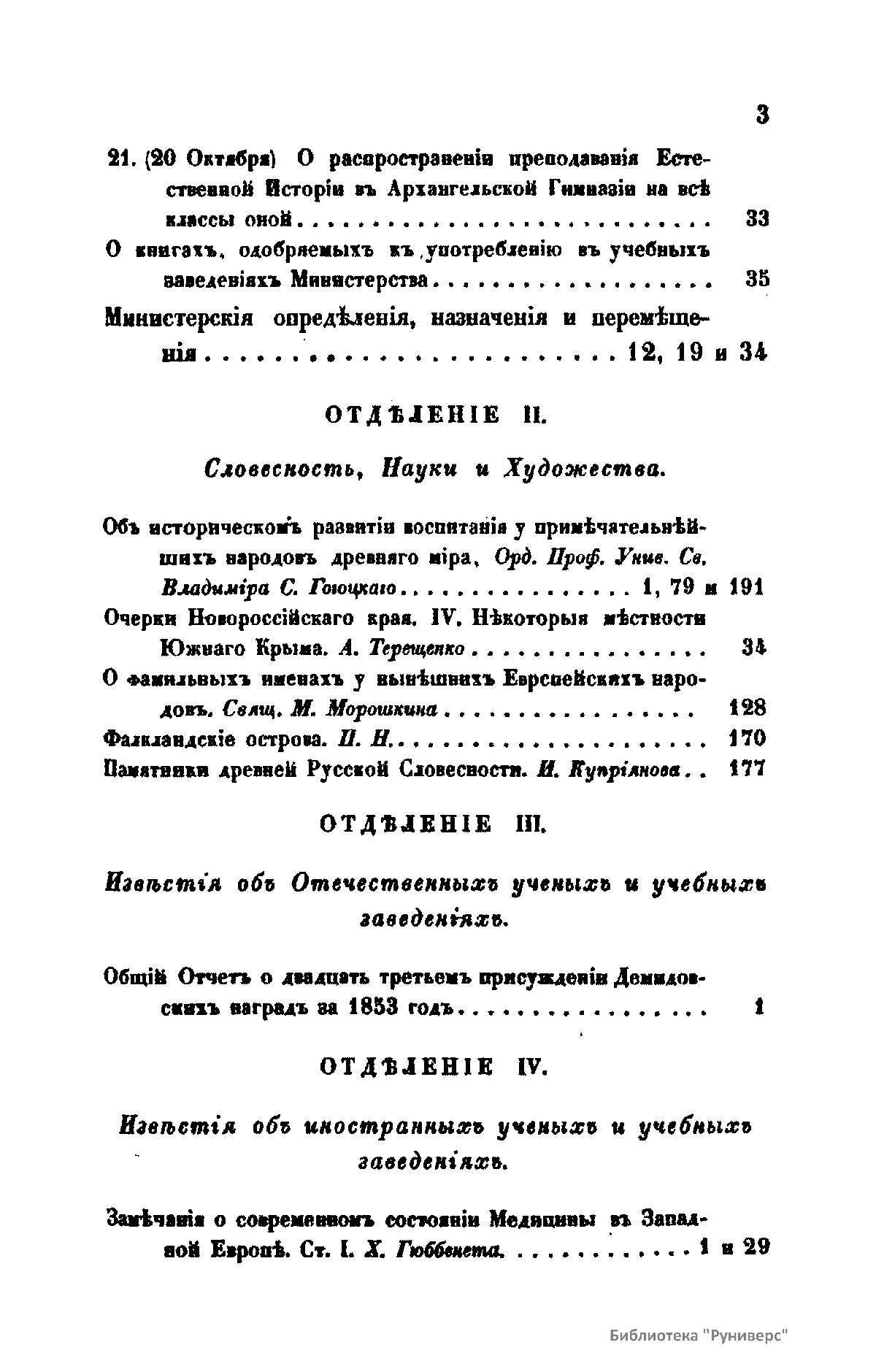 С 1864 года стали выходить указатели к повременным изданиям Министерства народного просвещения начиная с 1803 года.
