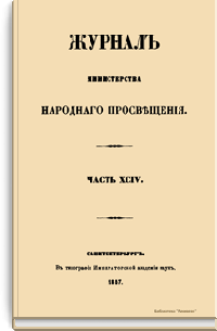 Журнал Министерства народного просвещения выходил с 1834-го по 1917 год. Официальный периодический журнал об успехах просвещения в России. Издатели журнала уверены в том, что «если для каждого человека необходим выход из грубой тьмы невежества и беспрерывное дальнейшее движение к свету, то для народов необходимо попечительное участие правительства в образовании. Только правительство имеет все средства знать и высоту успехов всемирного образования, и настоящие нужды Отечества».