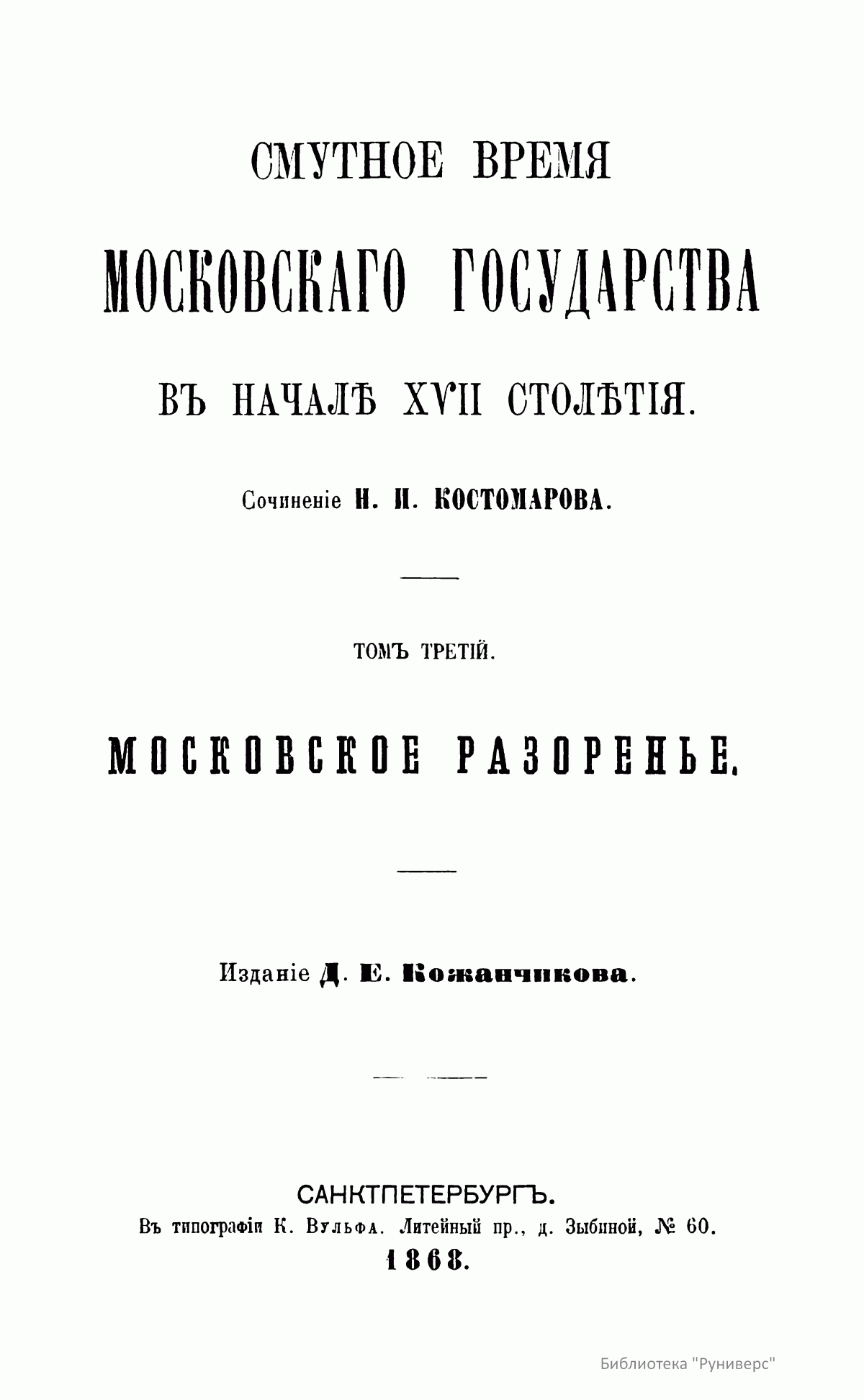 Историческiя монографiи и изслѣдованiя Николая Костомарова. Томъ шестой