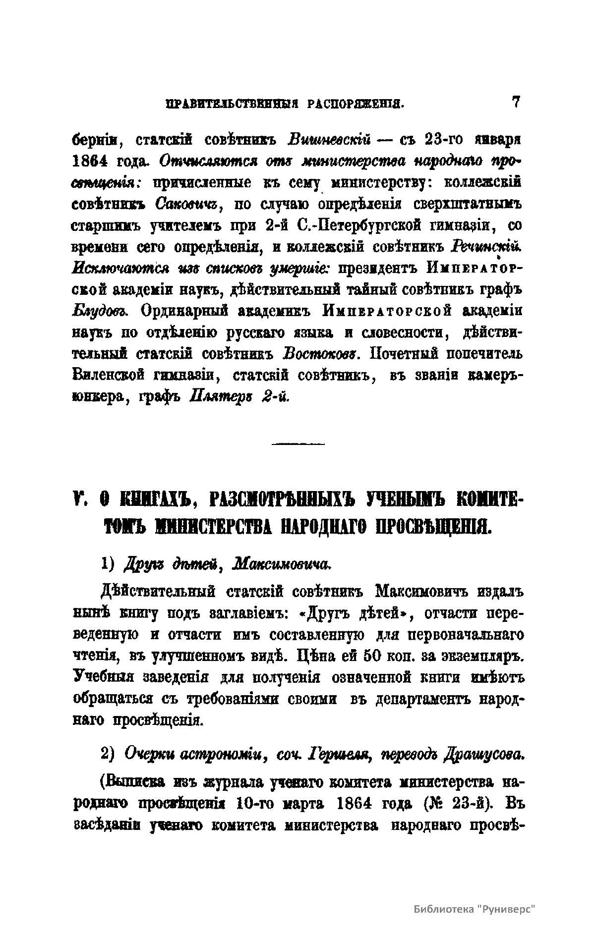 С 1864 года стали выходить указатели к повременным изданиям Министерства народного просвещения начиная с 1803 года.