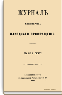 Журнал Министерства народного просвещения выходил с 1834-го по 1917 год. Официальный периодический журнал об успехах просвещения в России. Издатели журнала уверены в том, что «если для каждого человека необходим выход из грубой тьмы невежества и беспрерывное дальнейшее движение к свету, то для народов необходимо попечительное участие правительства в образовании. Только правительство имеет все средства знать и высоту успехов всемирного образования, и настоящие нужды Отечества».