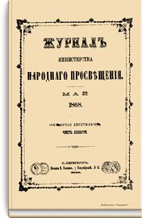 Журнал Министерства народного просвещения выходил с 1834-го по 1917 год. Официальный периодический журнал об успехах просвещения в России. Издатели журнала уверены в том, что «если для каждого человека необходим выход из грубой тьмы невежества и беспрерывное дальнейшее движение к свету, то для народов необходимо попечительное участие правительства в образовании. Только правительство имеет все средства знать и высоту успехов всемирного образования, и настоящие нужды Отечества».