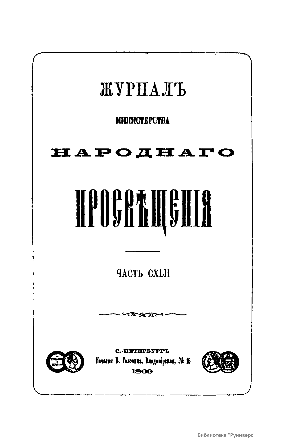 Журналъ Министерства народнаго просвѣщения. Часть CXLII