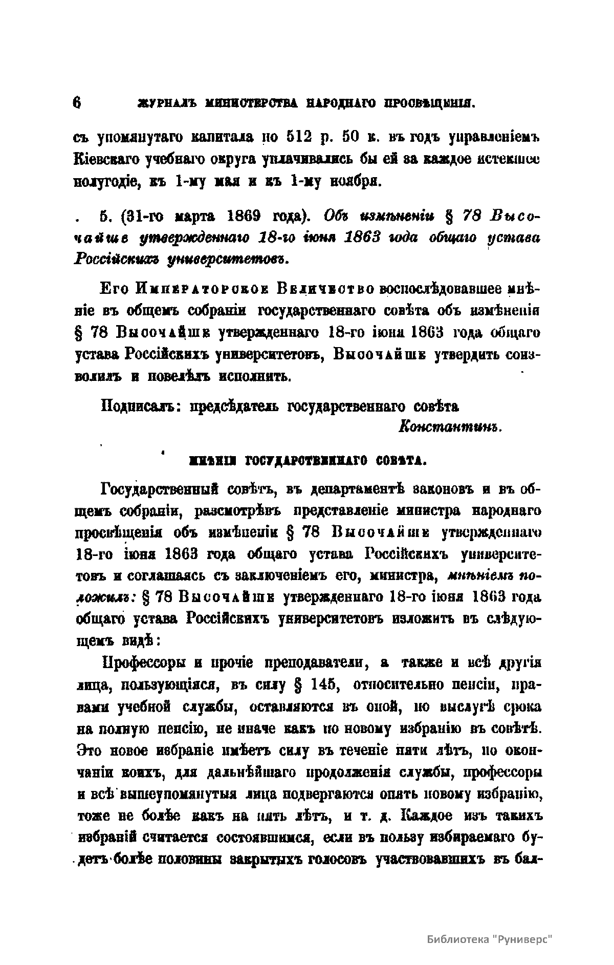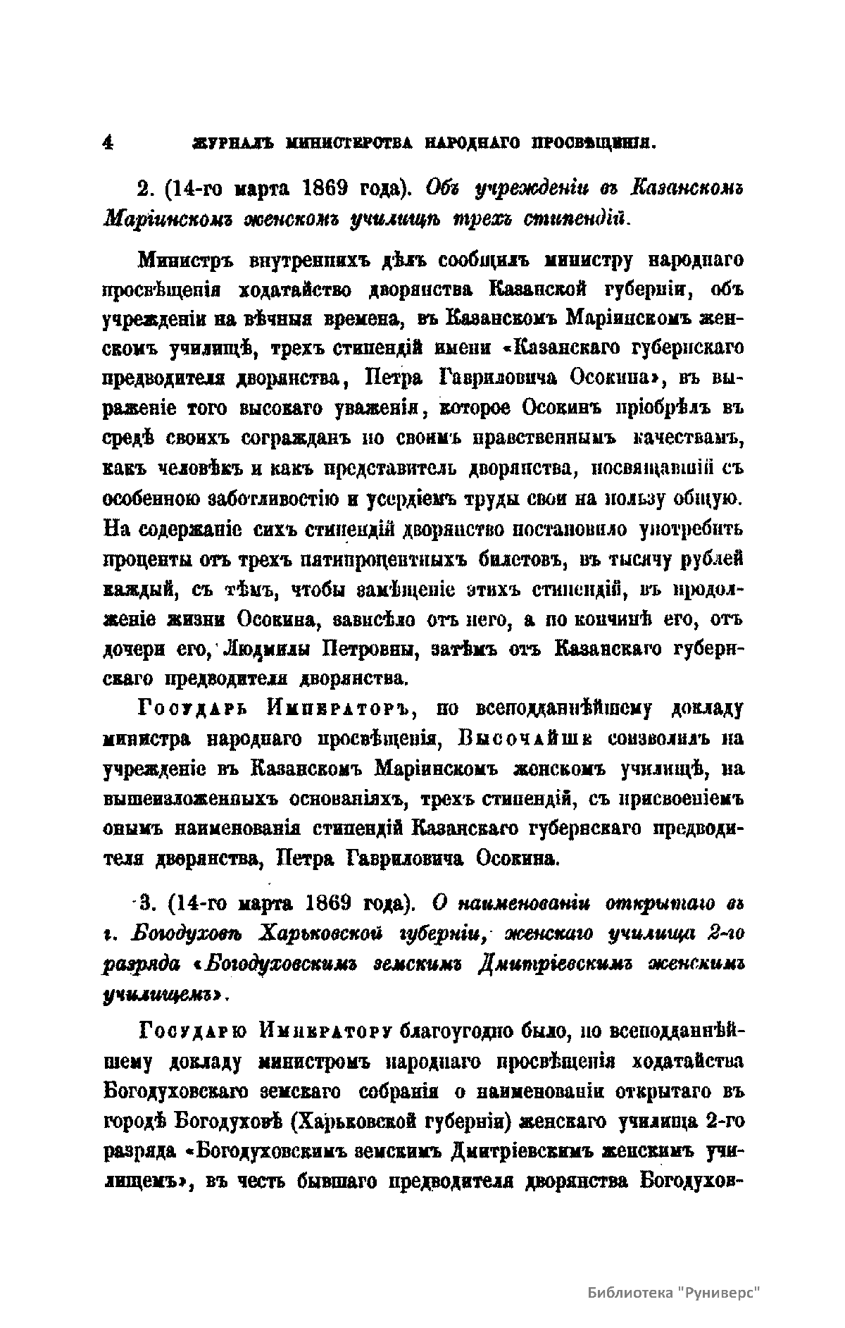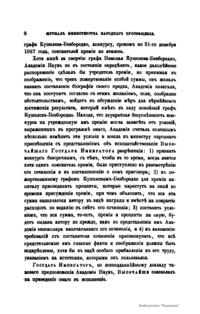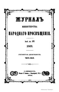 Журнал Министерства народного просвещения выходил с 1834-го по 1917 год. Официальный периодический журнал об успехах просвещения в России. Издатели журнала уверены в том, что «если для каждого человека необходим выход из грубой тьмы невежества и беспрерывное дальнейшее движение к свету, то для народов необходимо попечительное участие правительства в образовании. Только правительство имеет все средства знать и высоту успехов всемирного образования, и настоящие нужды Отечества».