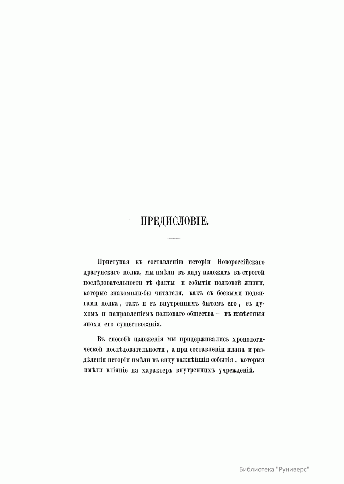 Труд выдающегося русского венного историка, генерал-лейтенанта Василия Александровича Потто (1836–1911) «История Новороссийского драгунского полка» удостоился высокой оценки императора Александра II. Помимо официальной летописи боевых действий, в издании отражена внутренняя жизнь полка и те характерные черты, которые отличали полковую жизнь новороссийских драгун от других полков русской армии. В. А. Потто, получивший военное образование в Тульском Александровском кадетском корпусе, в Орловском кадетском корпусе Бахтина и в Дворянском полку, в 1855 г. был произведен в прапорщики и получил назначение в Новороссийский драгунский полк, вместе с которым участвовал в блокаде и взятии Карса во время Крымской войны, в подавлении восстания в Польше в 1863 г. Исторический очерк разделен на три главных периода: первый охватывает события от времени сформирования полка до учреждения драгунского корпуса; второй период посвящен существованию драгунского корпуса; в третьем описан временной этап от распределения драгунских полков в состав кавалерийских дивизий до 1865 г. Основной текст дополняют сведения о наградах офицеров в военное и мирное время, описания обмундирования и вооружения, списки офицеров, служивших в полку и др.