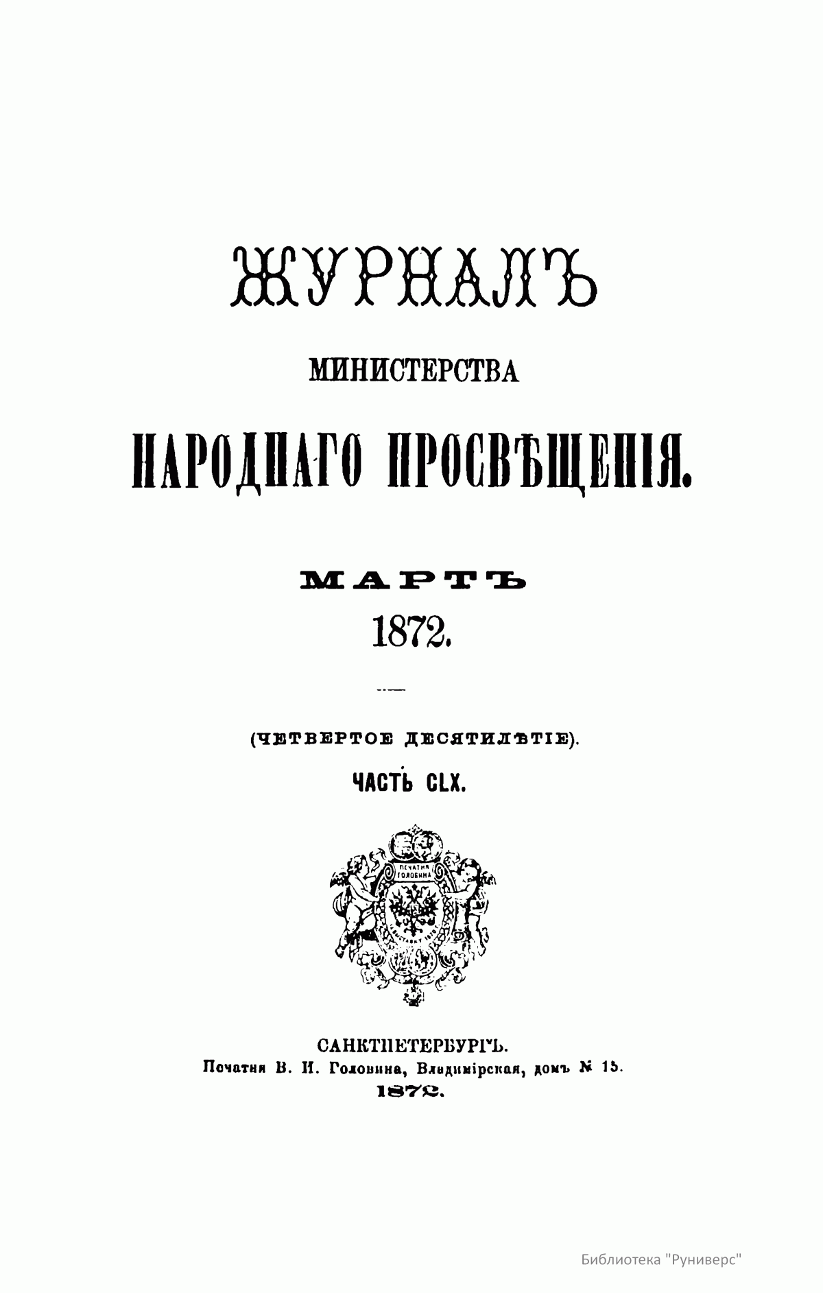 Журналъ Министерства народнаго просвѣщения. Часть CLX