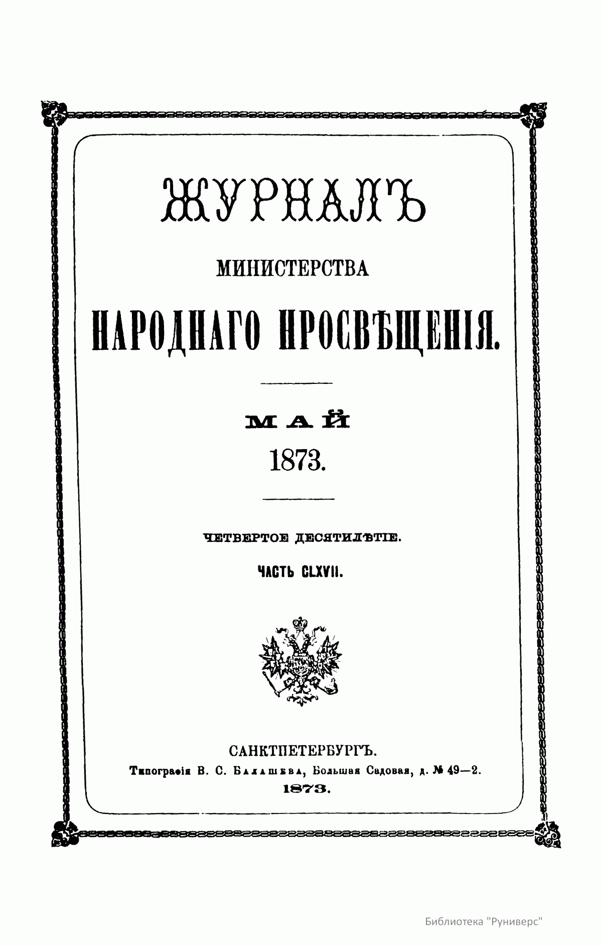 Журнал Министерства народного просвещения. Часть CLXVII