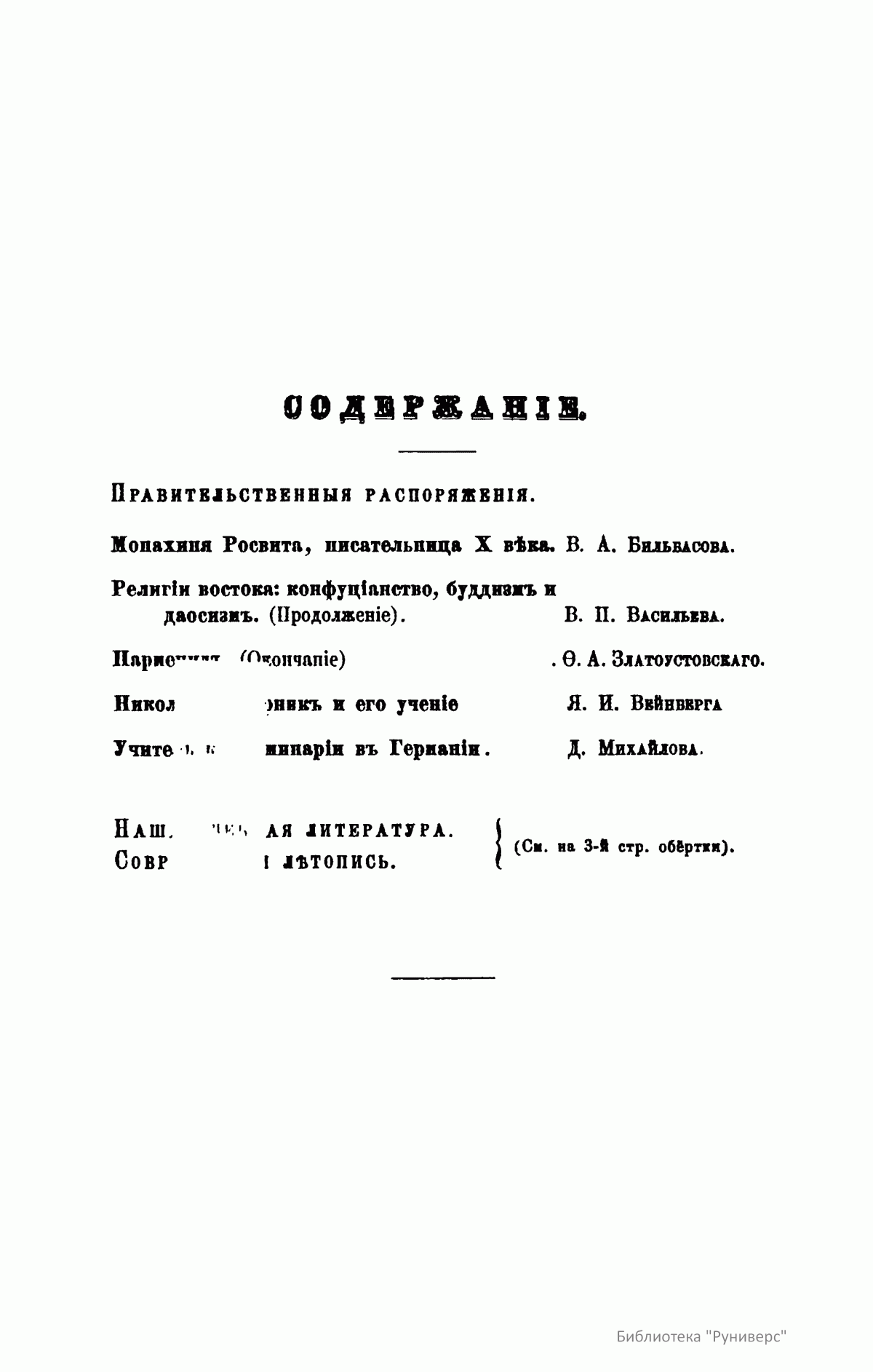 С 1864 года стали выходить указатели к повременным изданиям Министерства народного просвещения начиная с 1803 года.