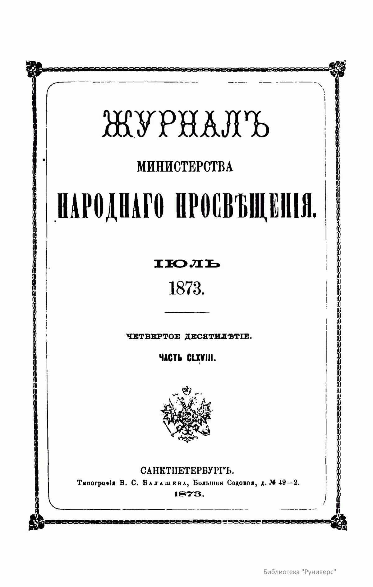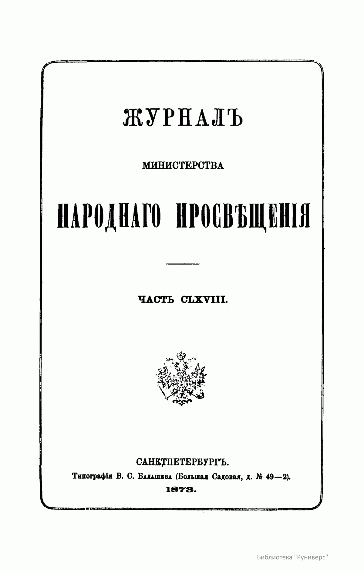 Журнал Министерства народного просвещения. Часть CLXVIII