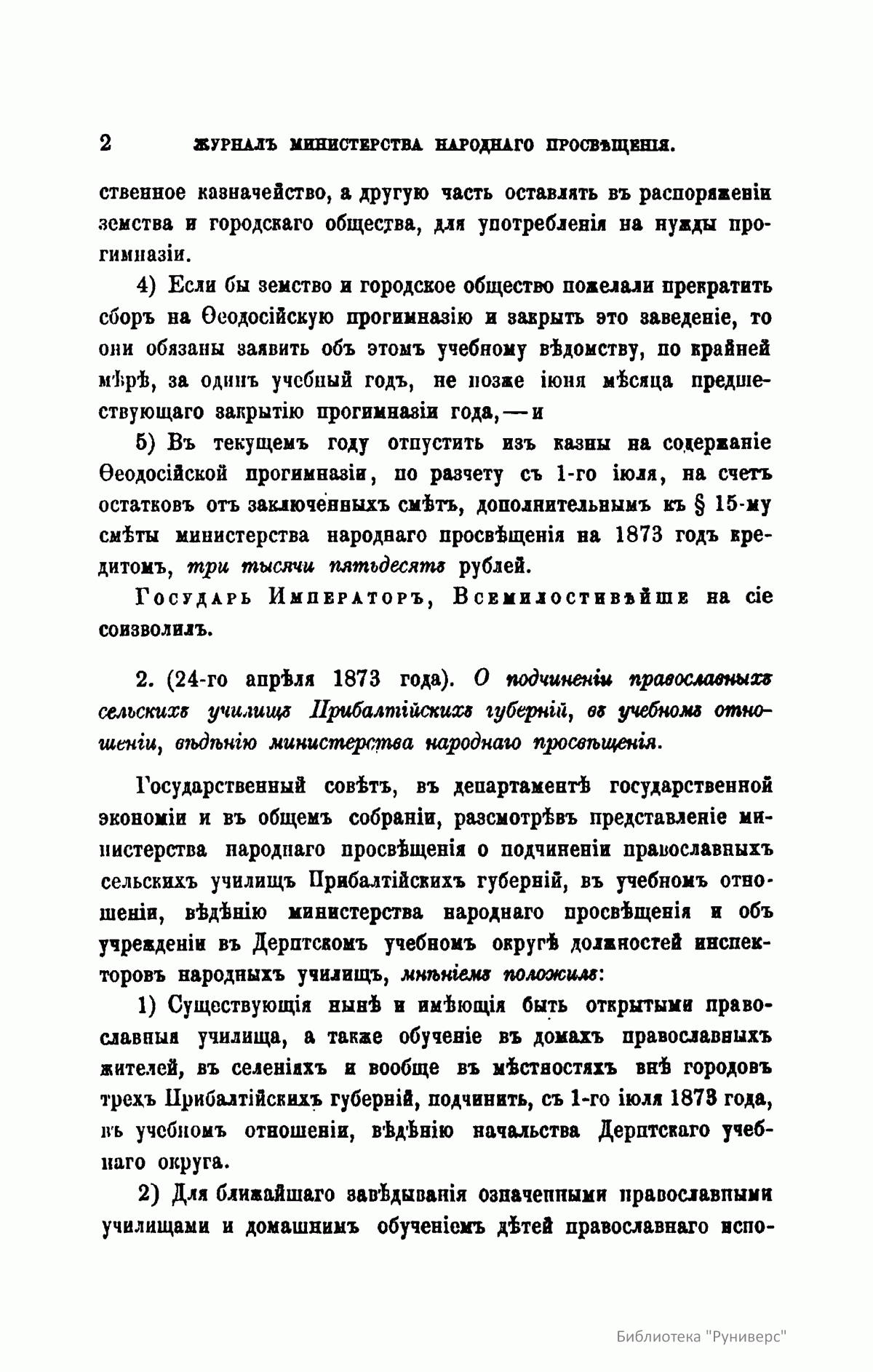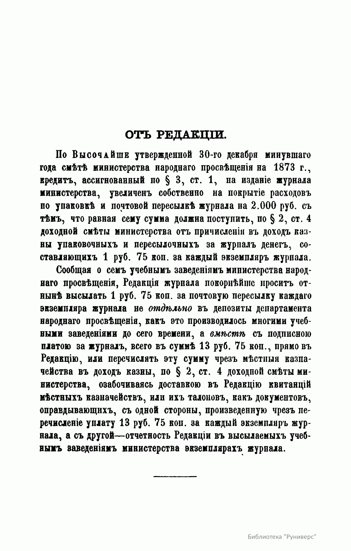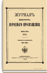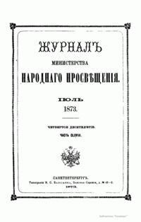 Журнал Министерства народного просвещения выходил с 1834-го по 1917 год. Официальный периодический журнал об успехах просвещения в России. Издатели журнала уверены в том, что «если для каждого человека необходим выход из грубой тьмы невежества и беспрерывное дальнейшее движение к свету, то для народов необходимо попечительное участие правительства в образовании. Только правительство имеет все средства знать и высоту успехов всемирного образования, и настоящие нужды Отечества».