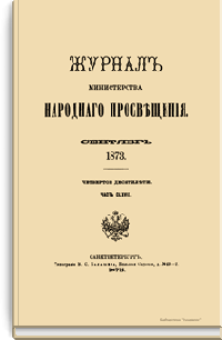 Журнал Министерства народного просвещения выходил с 1834-го по 1917 год. Официальный периодический журнал об успехах просвещения в России. Издатели журнала уверены в том, что «если для каждого человека необходим выход из грубой тьмы невежества и беспрерывное дальнейшее движение к свету, то для народов необходимо попечительное участие правительства в образовании. Только правительство имеет все средства знать и высоту успехов всемирного образования, и настоящие нужды Отечества».
