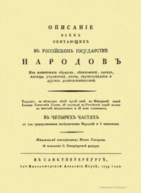 Описание всех обитающих в Российском государстве народов. Их житейских обрядов, обыкновений, одежд, жилищ, упражнений, забав, вероисповеданий и других достопамятностей. Часть третья о народах семоядских, манджурских и восточных сибирских как и о Шаманском