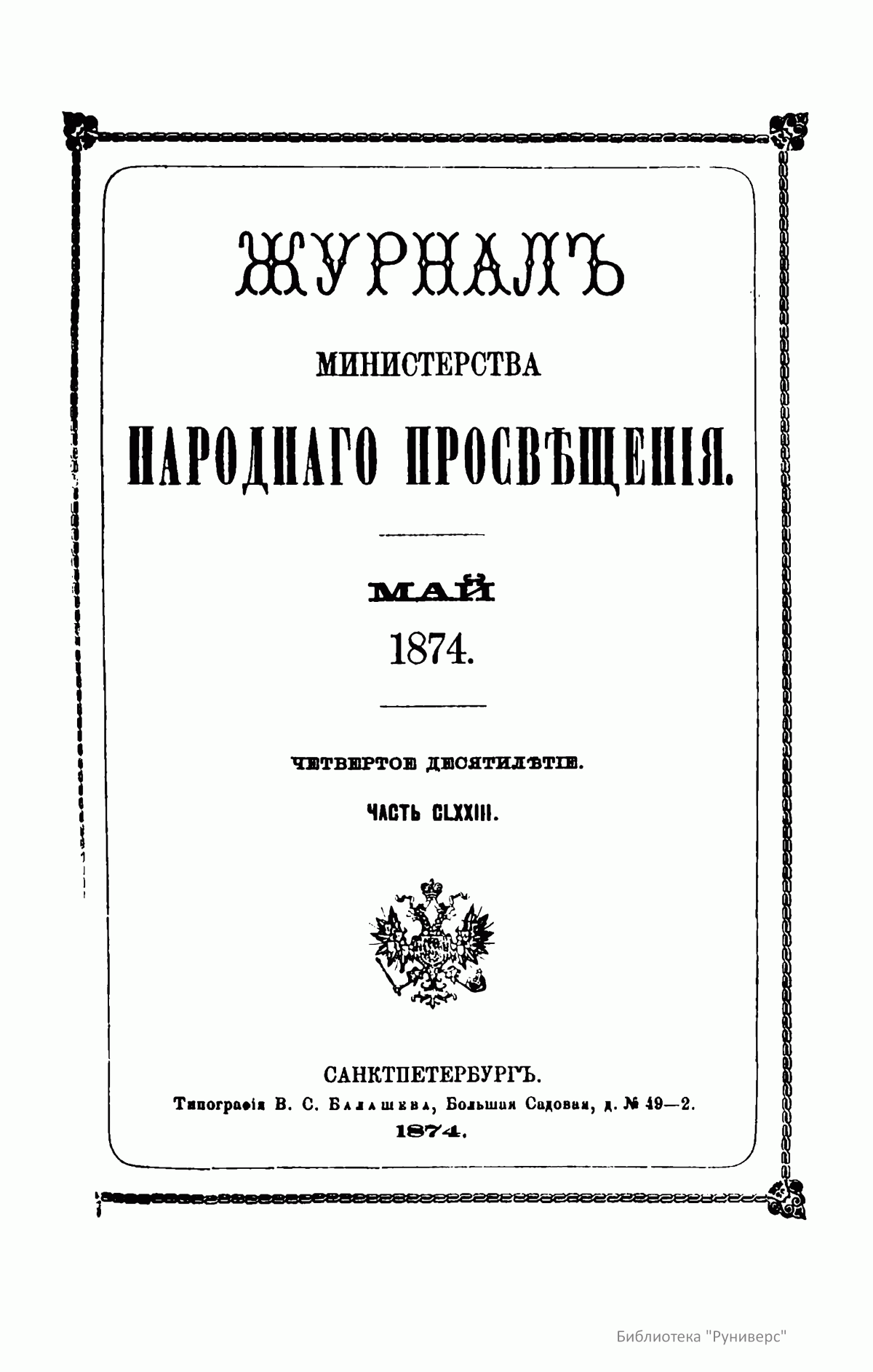 Журнал Министерства народного просвещения. Часть CLXXIII