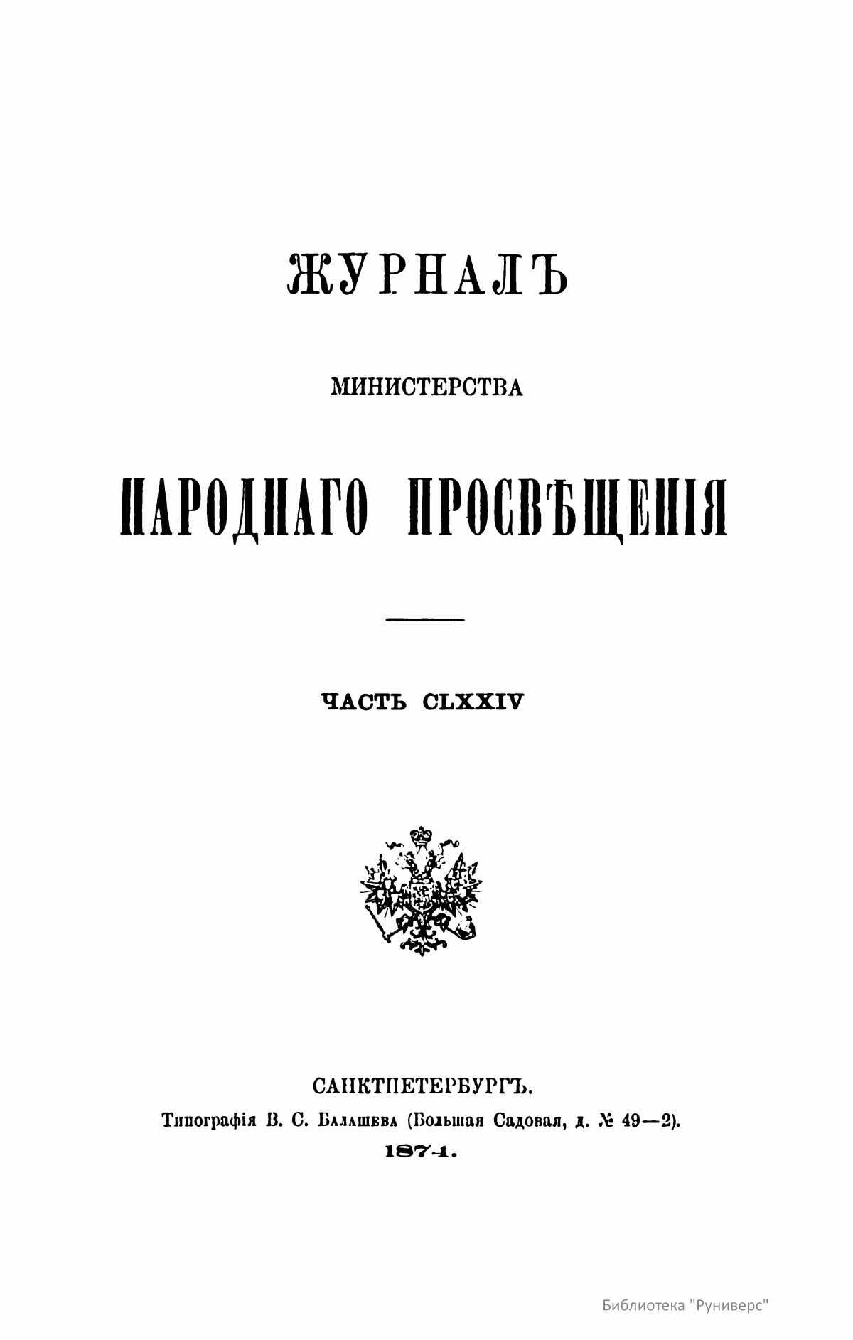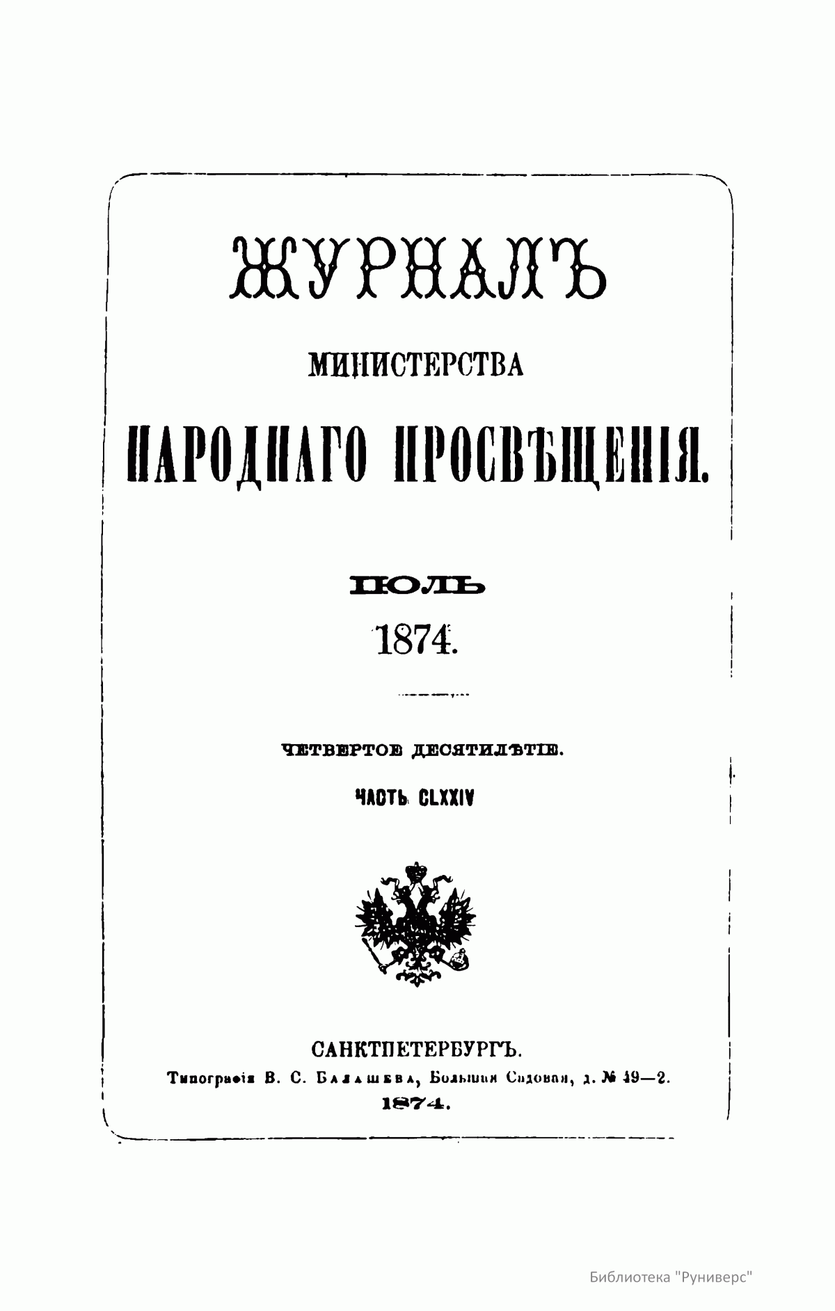 Журнал Министерства народного просвещения. Часть CLXXIV