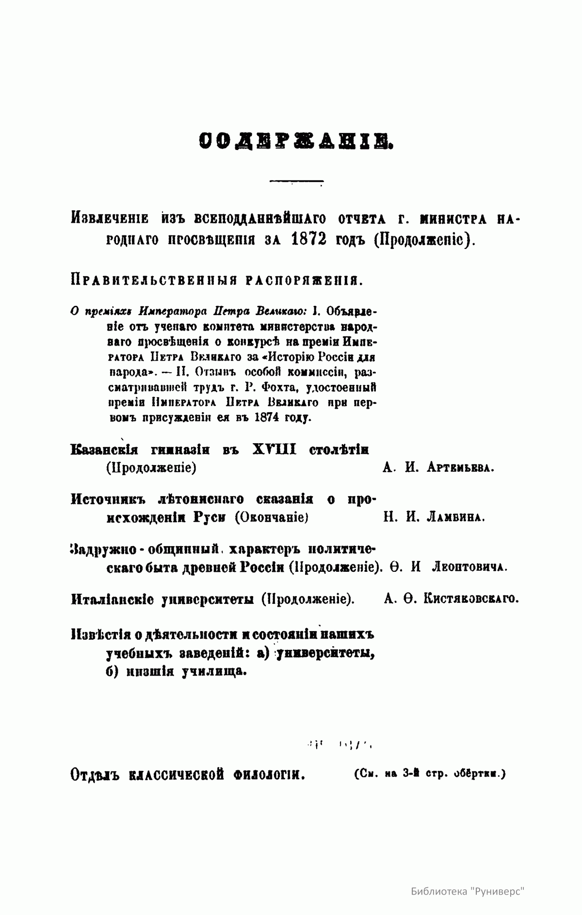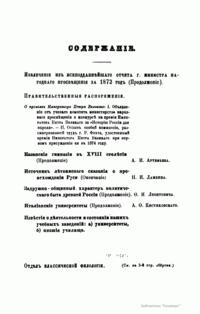 С 1864 года стали выходить указатели к повременным изданиям Министерства народного просвещения начиная с 1803 года.