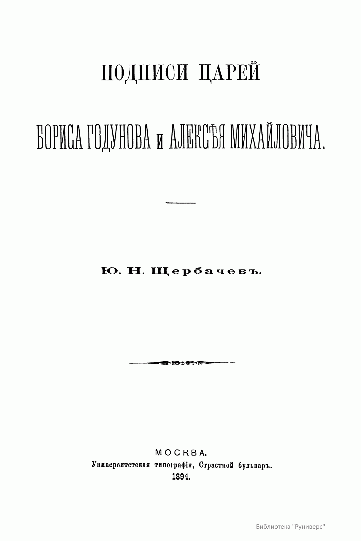 Подписи царей Бориса Годунова и Алексѣя Михайловича