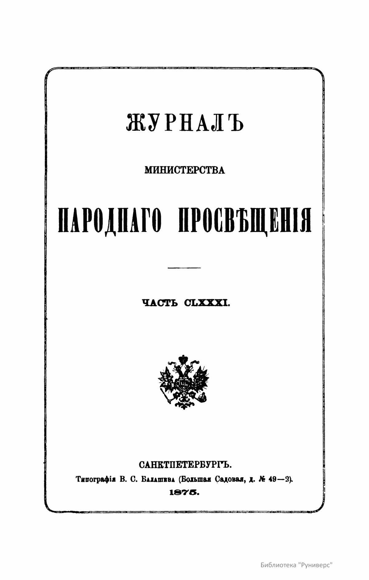 Журнал Министерства народного просвещения. Часть CLXXXI