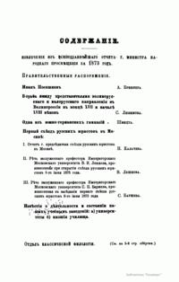 С 1864 года стали выходить указатели к повременным изданиям Министерства народного просвещения начиная с 1803 года.