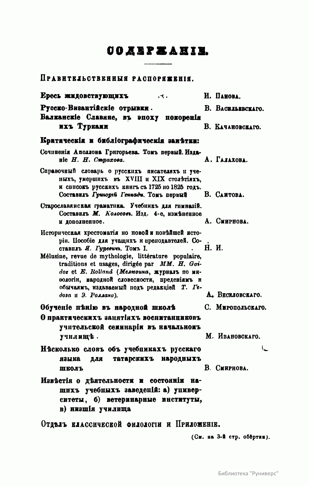 С 1864 года стали выходить указатели к повременным изданиям Министерства народного просвещения начиная с 1803 года.