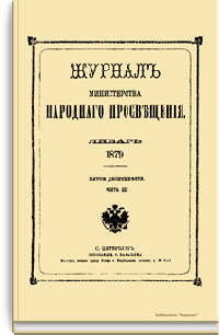 Журнал Министерства народного просвещения выходил с 1834-го по 1917 год. Официальный периодический журнал об успехах просвещения в России. Издатели журнала уверены в том, что «если для каждого человека необходим выход из грубой тьмы невежества и беспрерывное дальнейшее движение к свету, то для народов необходимо попечительное участие правительства в образовании. Только правительство имеет все средства знать и высоту успехов всемирного образования, и настоящие нужды Отечества».