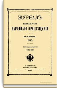 Журнал Министерства народного просвещения выходил с 1834-го по 1917 год. Официальный периодический журнал об успехах просвещения в России. Издатели журнала уверены в том, что «если для каждого человека необходим выход из грубой тьмы невежества и беспрерывное дальнейшее движение к свету, то для народов необходимо попечительное участие правительства в образовании. Только правительство имеет все средства знать и высоту успехов всемирного образования, и настоящие нужды Отечества».