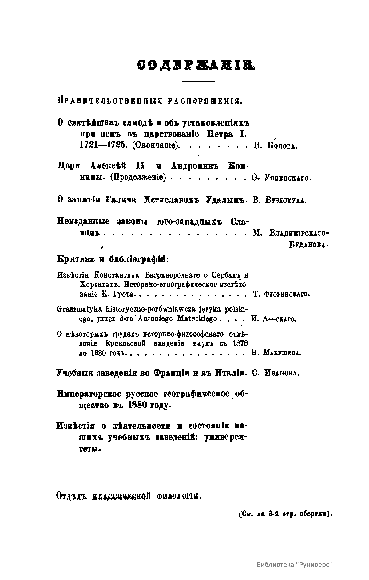 С 1864 года стали выходить указатели к повременным изданиям Министерства народного просвещения начиная с 1803 года.