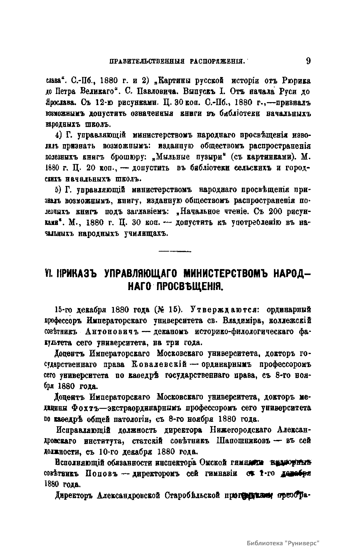 Журнал Министерства народного просвещения выходил с 1834-го по 1917 год. Официальный периодический журнал об успехах просвещения в России. Издатели журнала уверены в том, что «если для каждого человека необходим выход из грубой тьмы невежества и беспрерывное дальнейшее движение к свету, то для народов необходимо попечительное участие правительства в образовании. Только правительство имеет все средства знать и высоту успехов всемирного образования, и настоящие нужды Отечества».