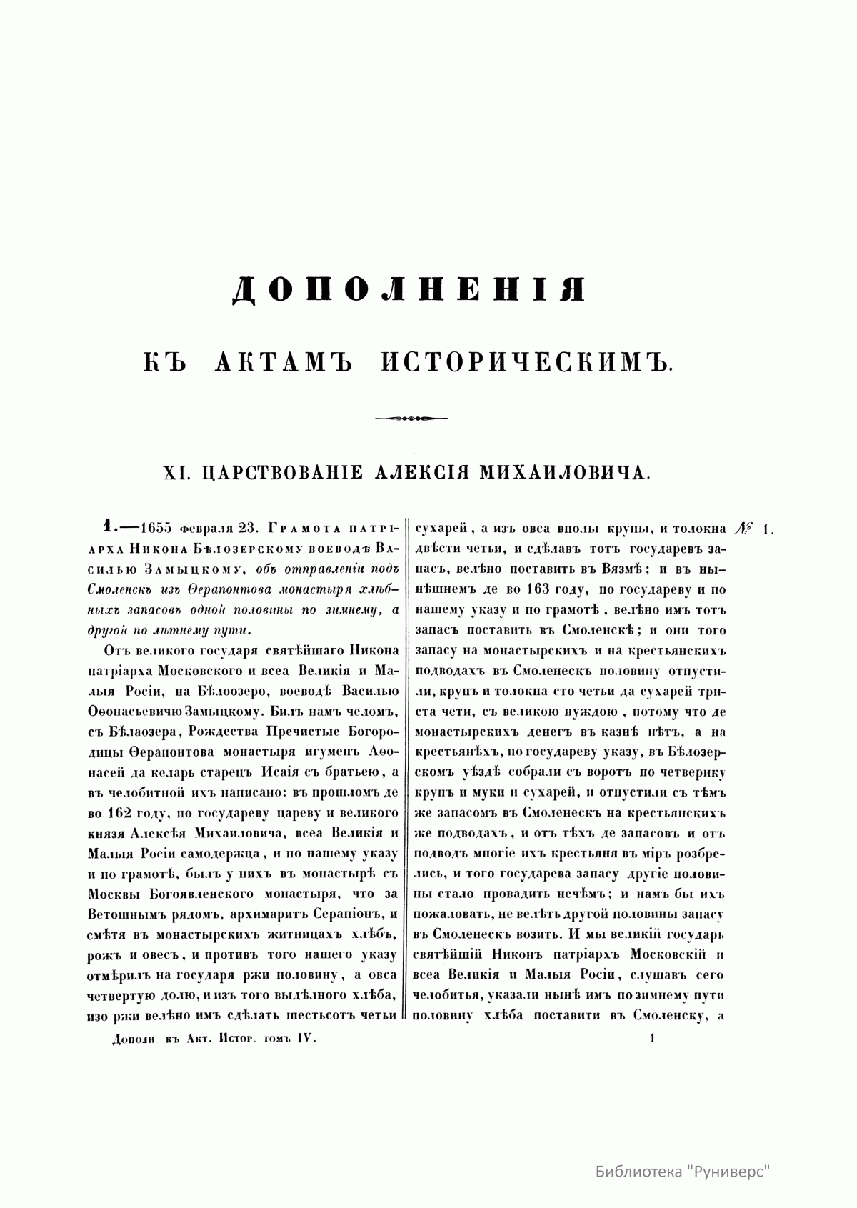 Дополненiя къ актамъ историческимъ, собранныя и изданныя археографическою коммиссiею. Томъ четвертый