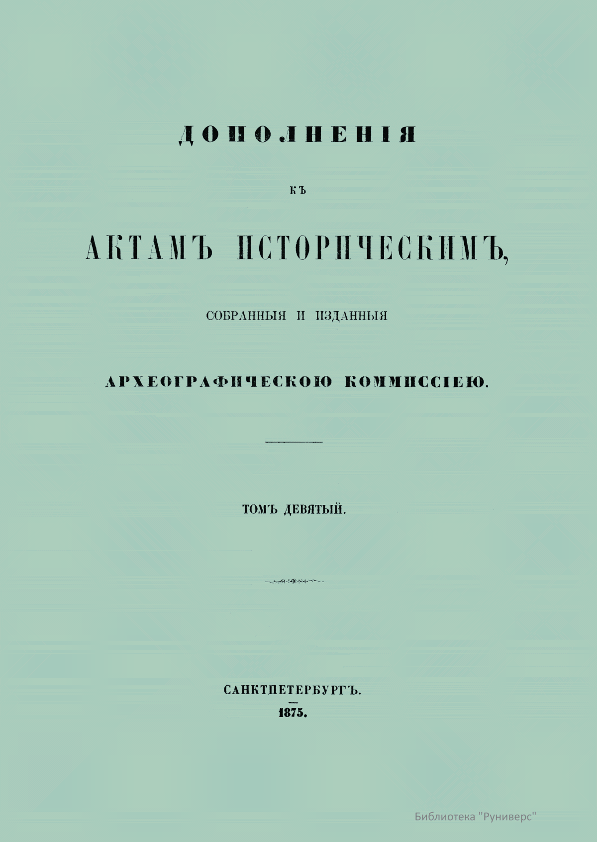 Дополнения к актам историческим, собранные и изданные археографической комиссией. Том девятый