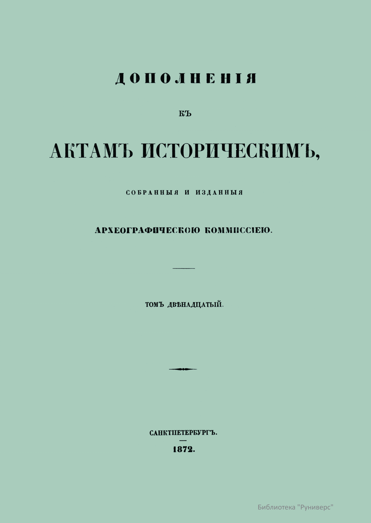 Дополненiя къ актамъ историческимъ, собранныя и изданныя археографическою коммиссiею. Томъ двѣнадцатый