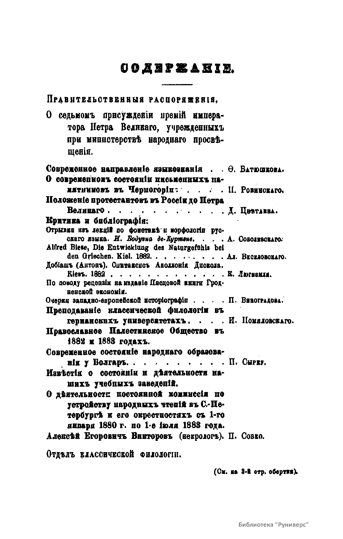 С 1864 года стали выходить указатели к повременным изданиям Министерства народного просвещения начиная с 1803 года.