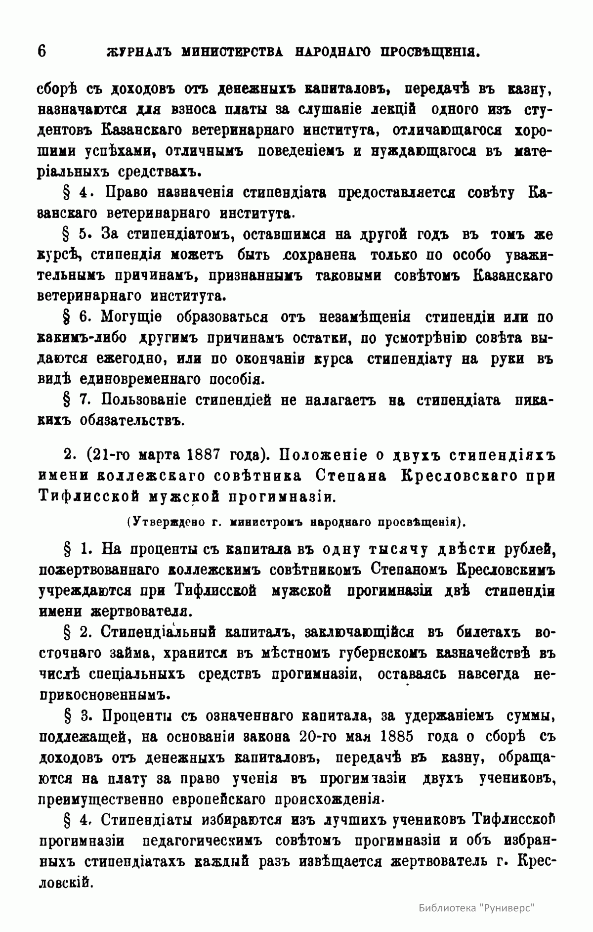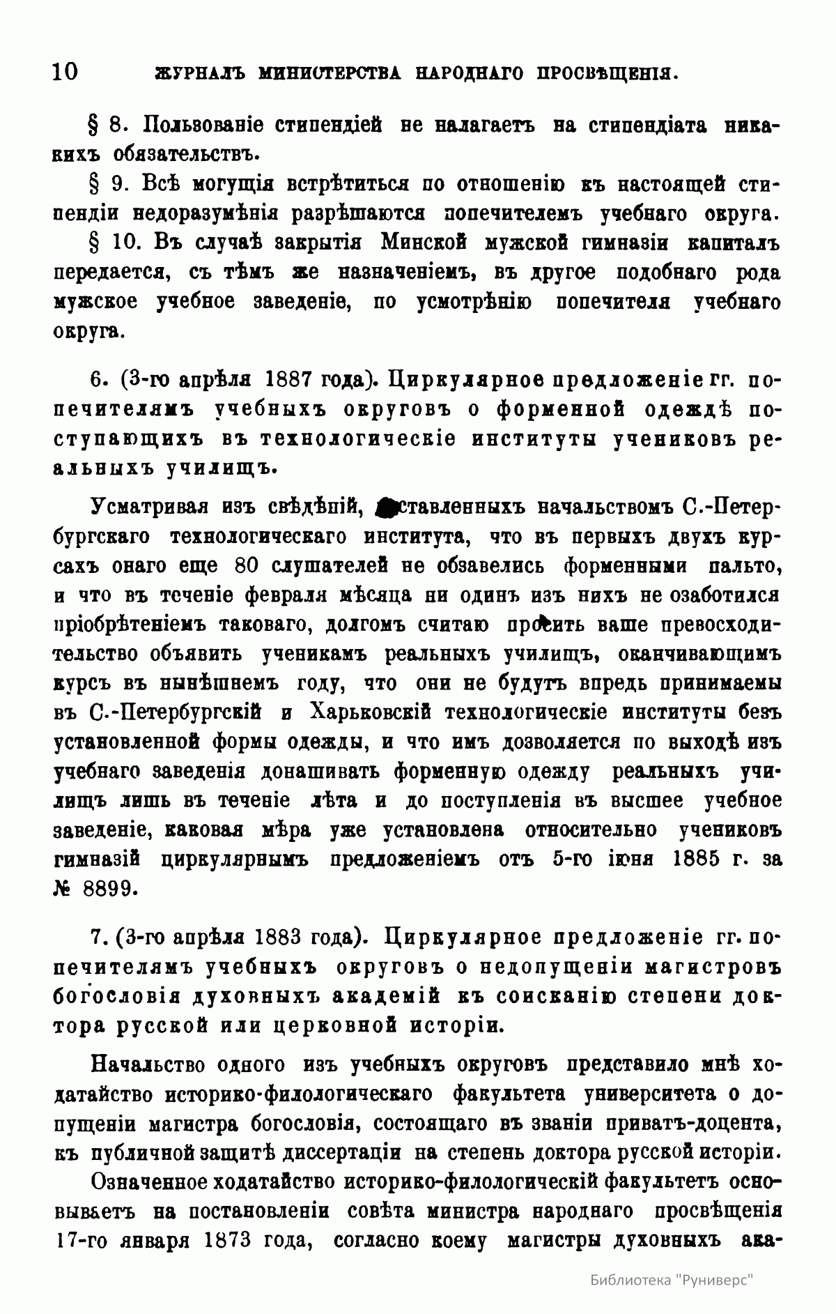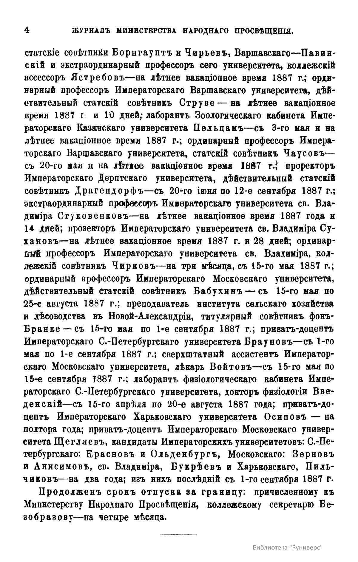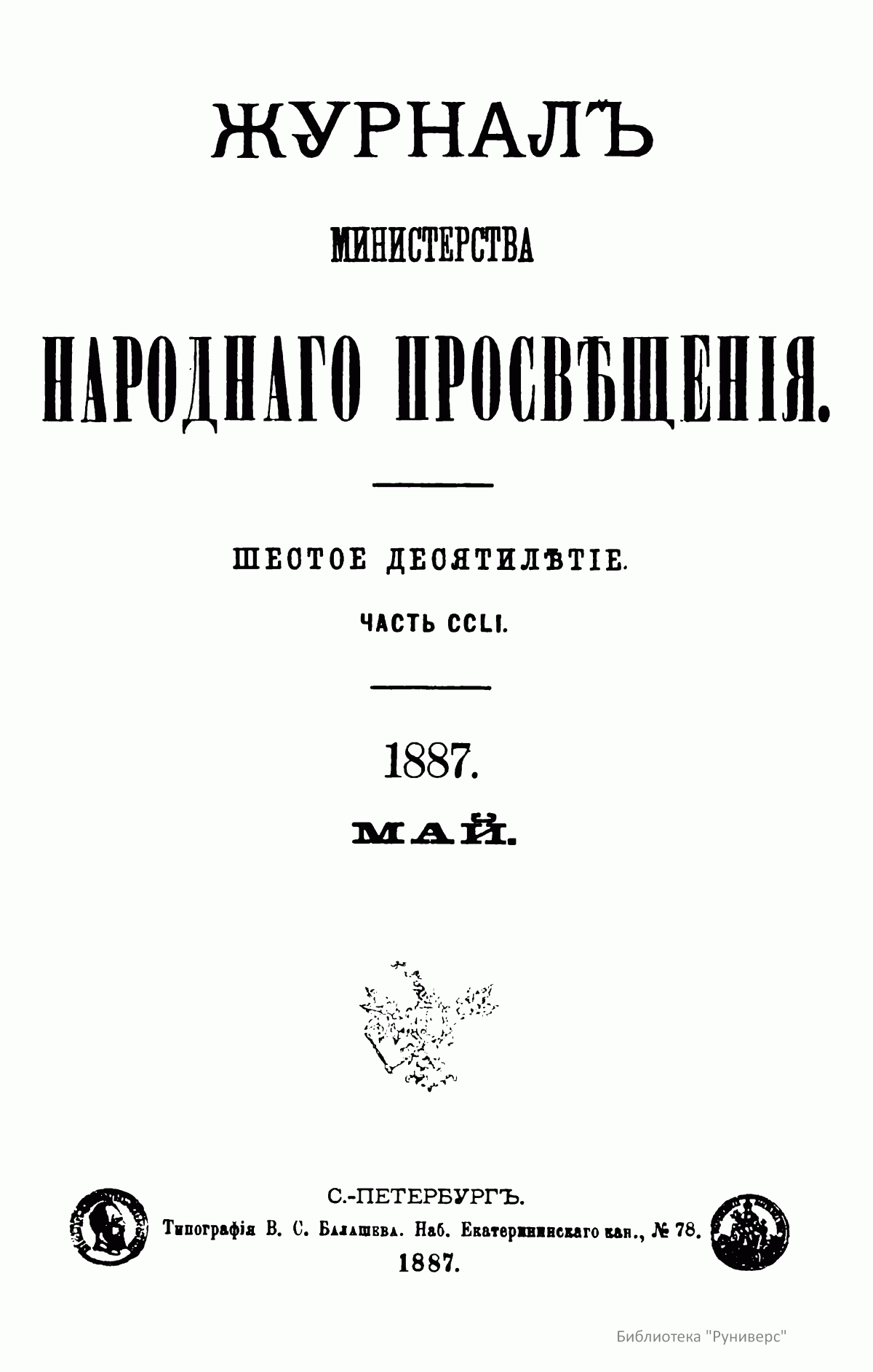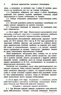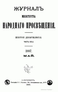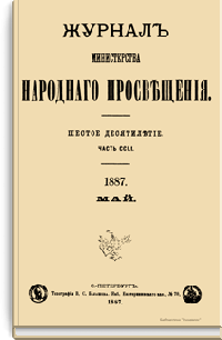 Журнал Министерства народного просвещения выходил с 1834-го по 1917 год. Официальный периодический журнал об успехах просвещения в России. Издатели журнала уверены в том, что «если для каждого человека необходим выход из грубой тьмы невежества и беспрерывное дальнейшее движение к свету, то для народов необходимо попечительное участие правительства в образовании. Только правительство имеет все средства знать и высоту успехов всемирного образования, и настоящие нужды Отечества».