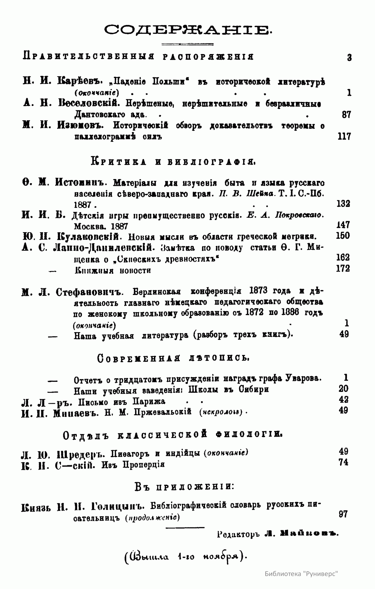 Журнал широкого профиля (гуманитарные науки), но в нем печатались философские статьи, имеется много официального материала, ценного для понимания истории философии в России.