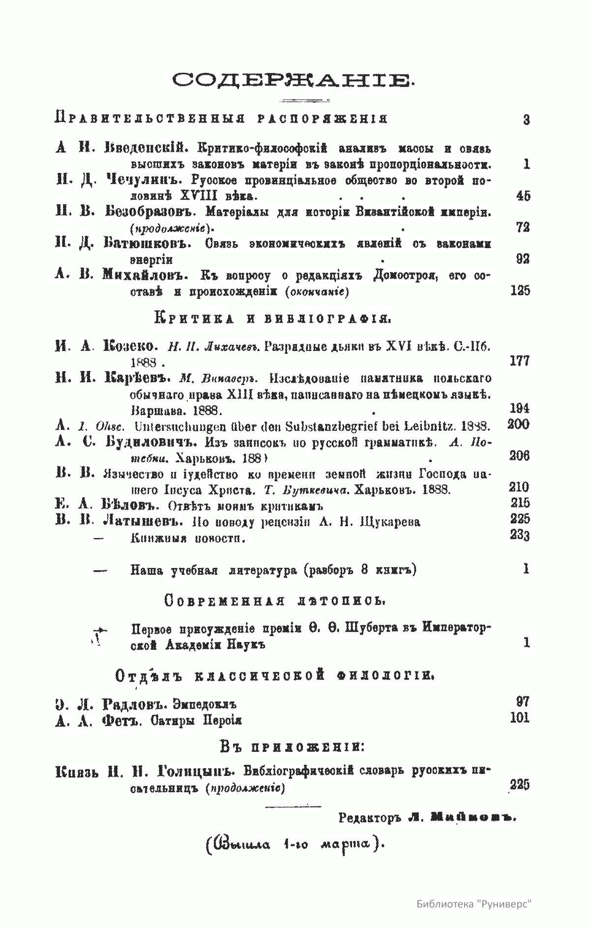 Журнал широкого профиля (гуманитарные науки), но в нем печатались философские статьи, имеется много официального материала, ценного для понимания истории философии в России.