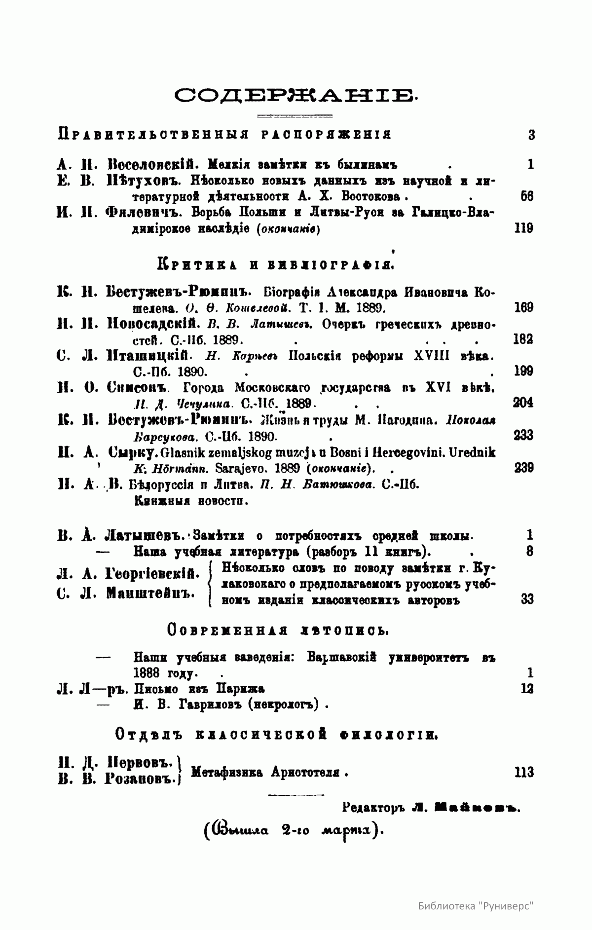 (помощник редактора, с 1899 года - редактор).