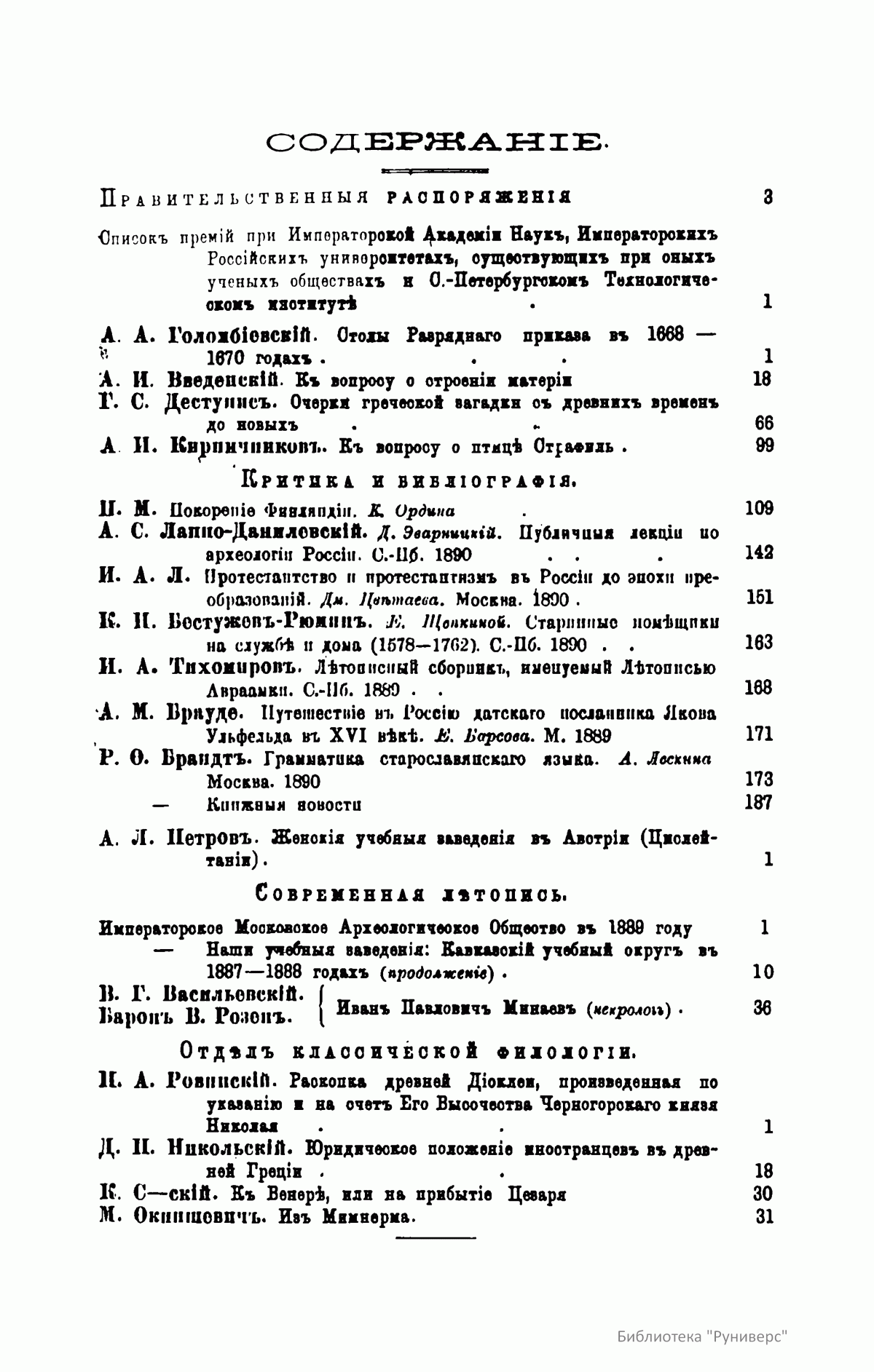 С 1864 года стали выходить указатели к повременным изданиям Министерства народного просвещения начиная с 1803 года.