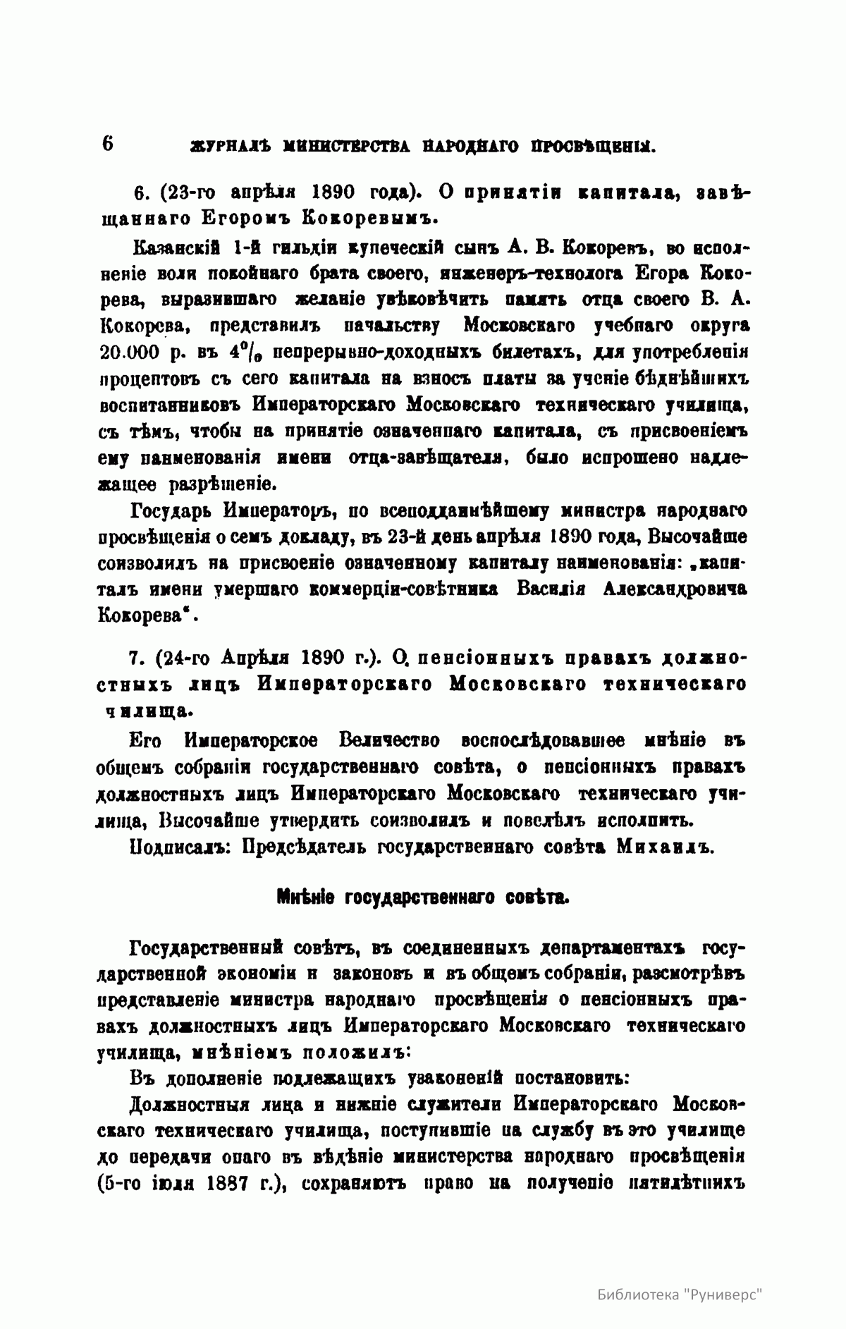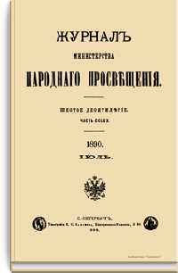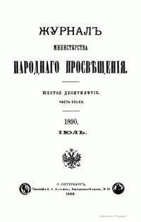 Журнал Министерства народного просвещения выходил с 1834-го по 1917 год. Официальный периодический журнал об успехах просвещения в России. Издатели журнала уверены в том, что «если для каждого человека необходим выход из грубой тьмы невежества и беспрерывное дальнейшее движение к свету, то для народов необходимо попечительное участие правительства в образовании. Только правительство имеет все средства знать и высоту успехов всемирного образования, и настоящие нужды Отечества».