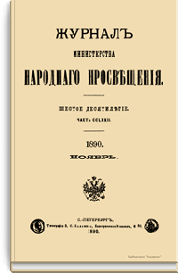 Журнал Министерства народного просвещения выходил с 1834-го по 1917 год. Официальный периодический журнал об успехах просвещения в России. Издатели журнала уверены в том, что «если для каждого человека необходим выход из грубой тьмы невежества и беспрерывное дальнейшее движение к свету, то для народов необходимо попечительное участие правительства в образовании. Только правительство имеет все средства знать и высоту успехов всемирного образования, и настоящие нужды Отечества».