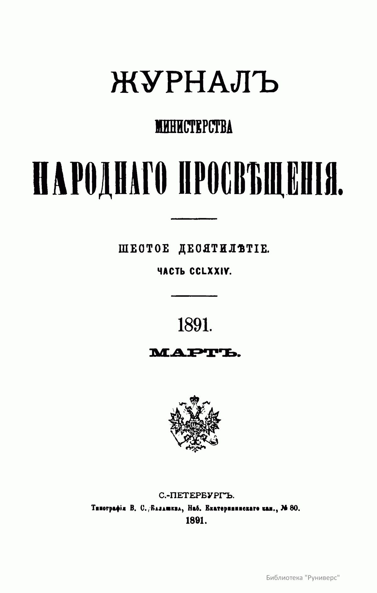 Журналъ Министерства народнаго просвѣщения. Часть CCLXXIV