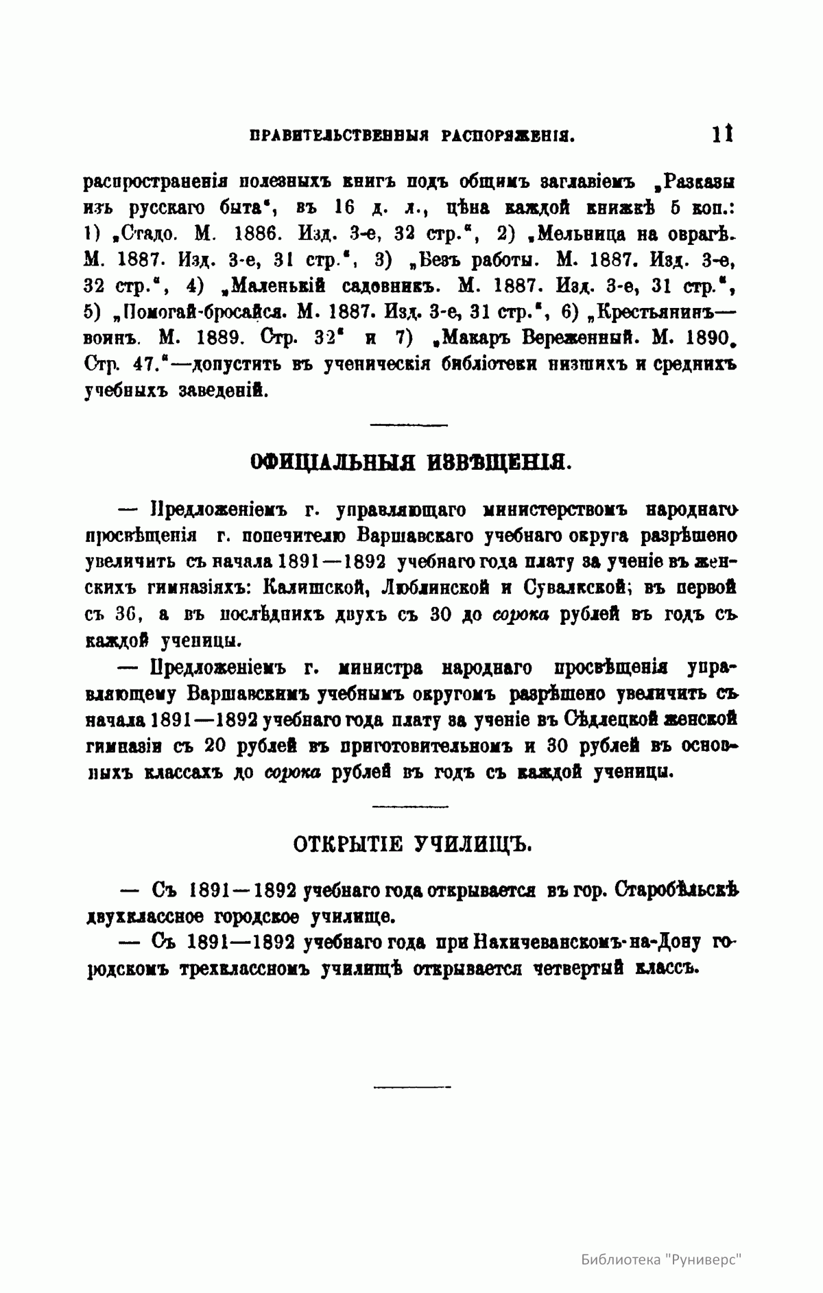 Журнал Министерства народного просвещения выходил с 1834-го по 1917 год. Официальный периодический журнал об успехах просвещения в России. Издатели журнала уверены в том, что «если для каждого человека необходим выход из грубой тьмы невежества и беспрерывное дальнейшее движение к свету, то для народов необходимо попечительное участие правительства в образовании. Только правительство имеет все средства знать и высоту успехов всемирного образования, и настоящие нужды Отечества».