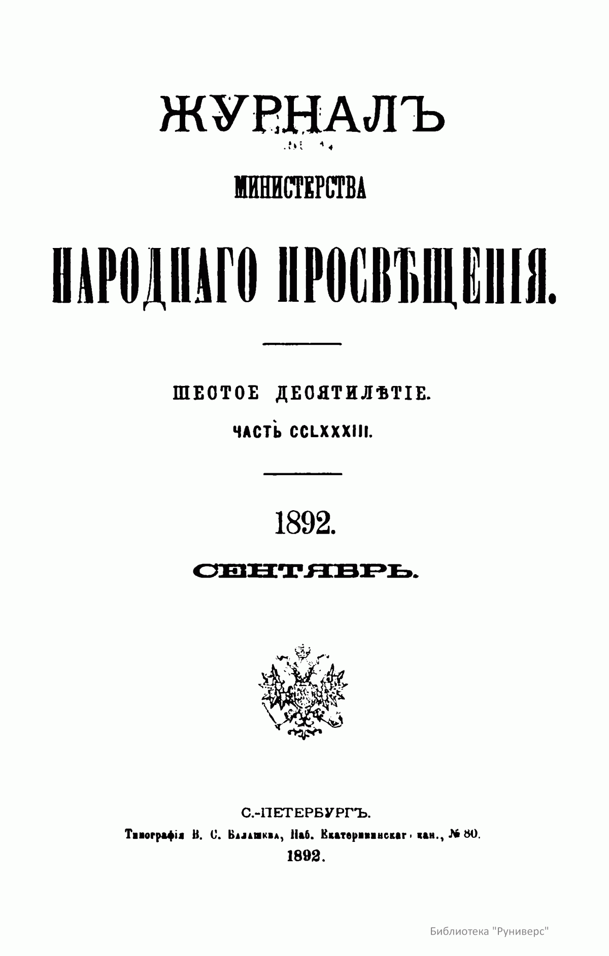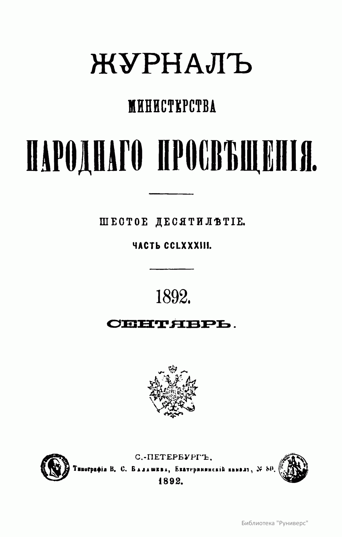Журнал Министерства народного просвещения. Часть CCLXXXIII