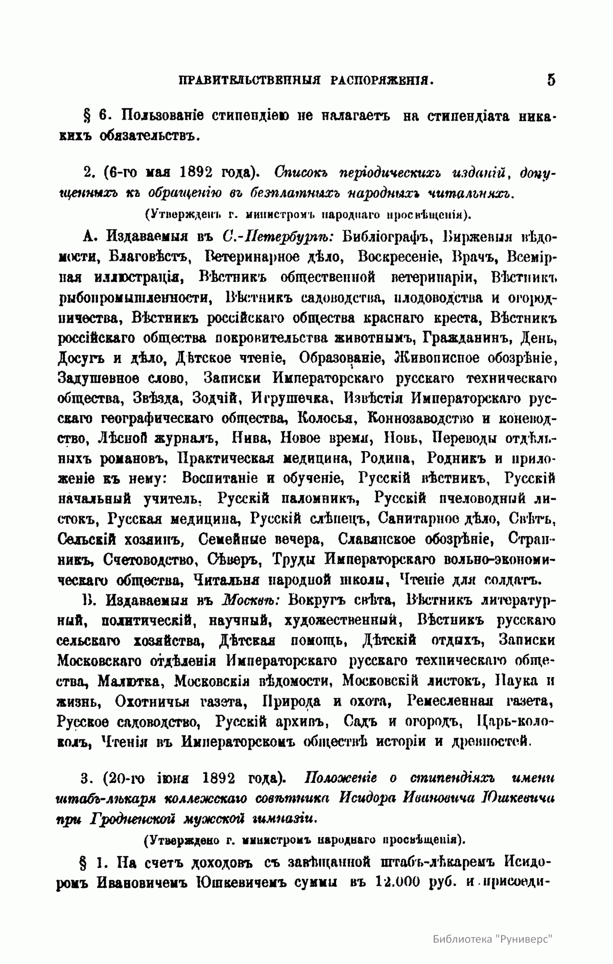 Журнал Министерства народного просвещения выходил с 1834-го по 1917 год. Официальный периодический журнал об успехах просвещения в России. Издатели журнала уверены в том, что «если для каждого человека необходим выход из грубой тьмы невежества и беспрерывное дальнейшее движение к свету, то для народов необходимо попечительное участие правительства в образовании. Только правительство имеет все средства знать и высоту успехов всемирного образования, и настоящие нужды Отечества».