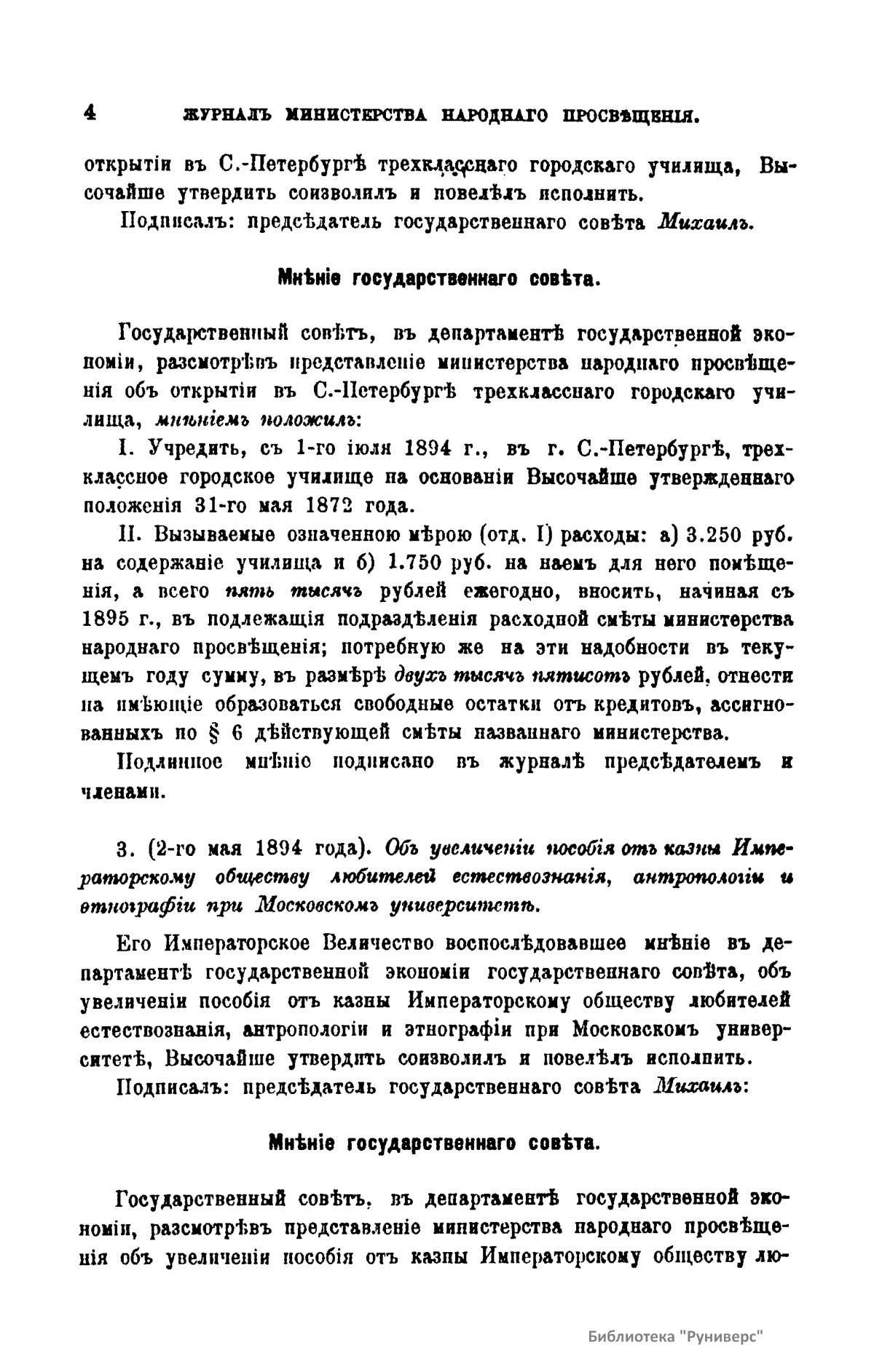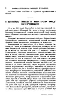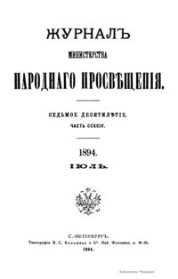 Журнал Министерства народного просвещения выходил с 1834-го по 1917 год. Официальный периодический журнал об успехах просвещения в России. Издатели журнала уверены в том, что «если для каждого человека необходим выход из грубой тьмы невежества и беспрерывное дальнейшее движение к свету, то для народов необходимо попечительное участие правительства в образовании. Только правительство имеет все средства знать и высоту успехов всемирного образования, и настоящие нужды Отечества».